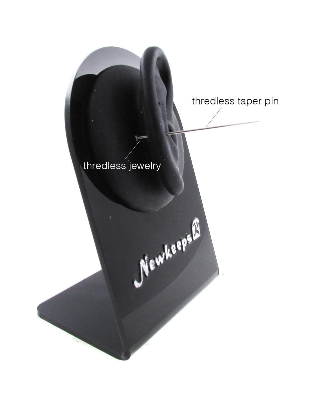 - Nuestro pin de inserción sin rosca solo se ajusta a nuestra joyería de perforación sin rosca, otros no son compatibles. Asegúrate de usar algún tipo de vitamina E o aceite mineral como lubricante mientras estiras.