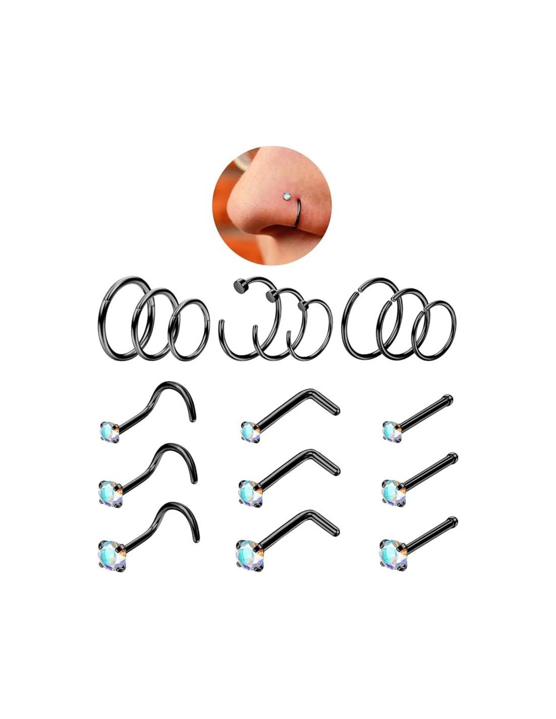 - Aro Nasal de Acero Quirúrgico: Aros nasales y studs negros para mujeres hechos de acero quirúrgico 316 L de alta calidad, hipoalergénico, adecuado para pieles sensibles; incrustados con deslumbrante CZ AAAAA+, no es fácil que se caiga; superficie altamente pulida es suave y no raspa la piel, cómodo de llevar durante mucho tiempo