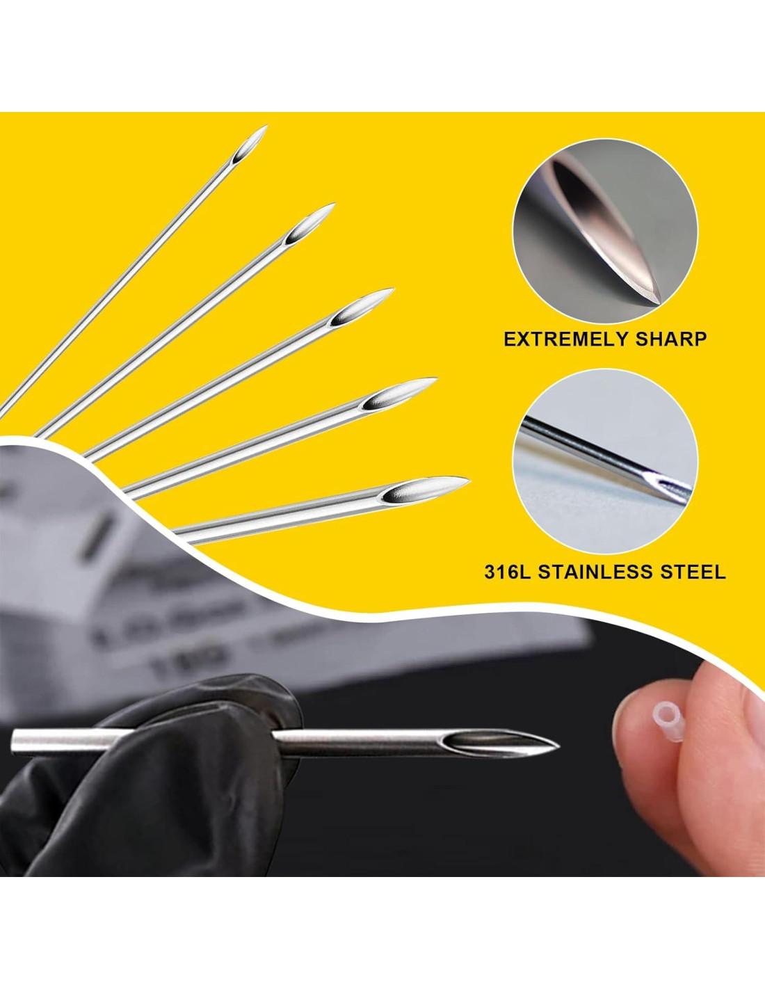 - CALIDAD PREMIUM - El kit de perforación de orejas y nariz está hecho de acero inoxidable 316L, duradero para usar con mayor confianza. Sin rebabas en la superficie, punta hueca y afilada, proporciona más suavidad al perforar.