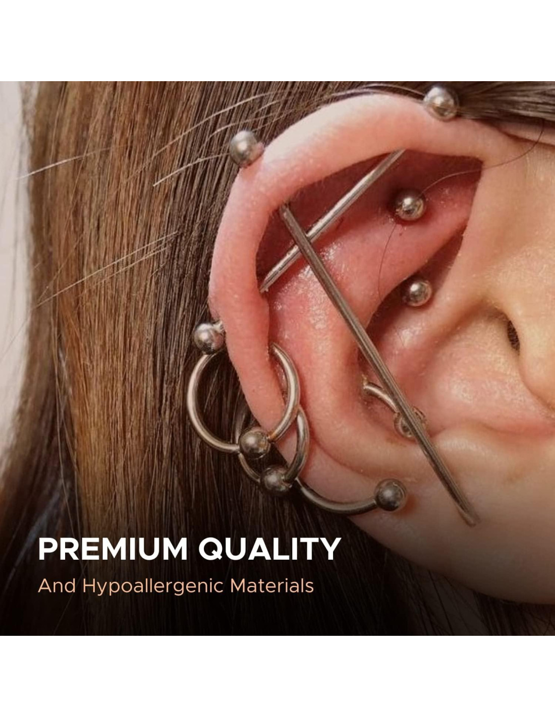 - PAQUETE DE VALOR: Kit Profesional Completo Incluye Herramientas y Joyería Necesarias para Realizar Piercings Seguros en Orejas, Cara y Cuerpo: Cartílago de Oreja, Nariz, Septum, Tragus, Labret, Labio, Monroe, Medusa, Pezón, Ombligo, Helix, Daith, Lengua, Smiley, Snug, Ceja.
