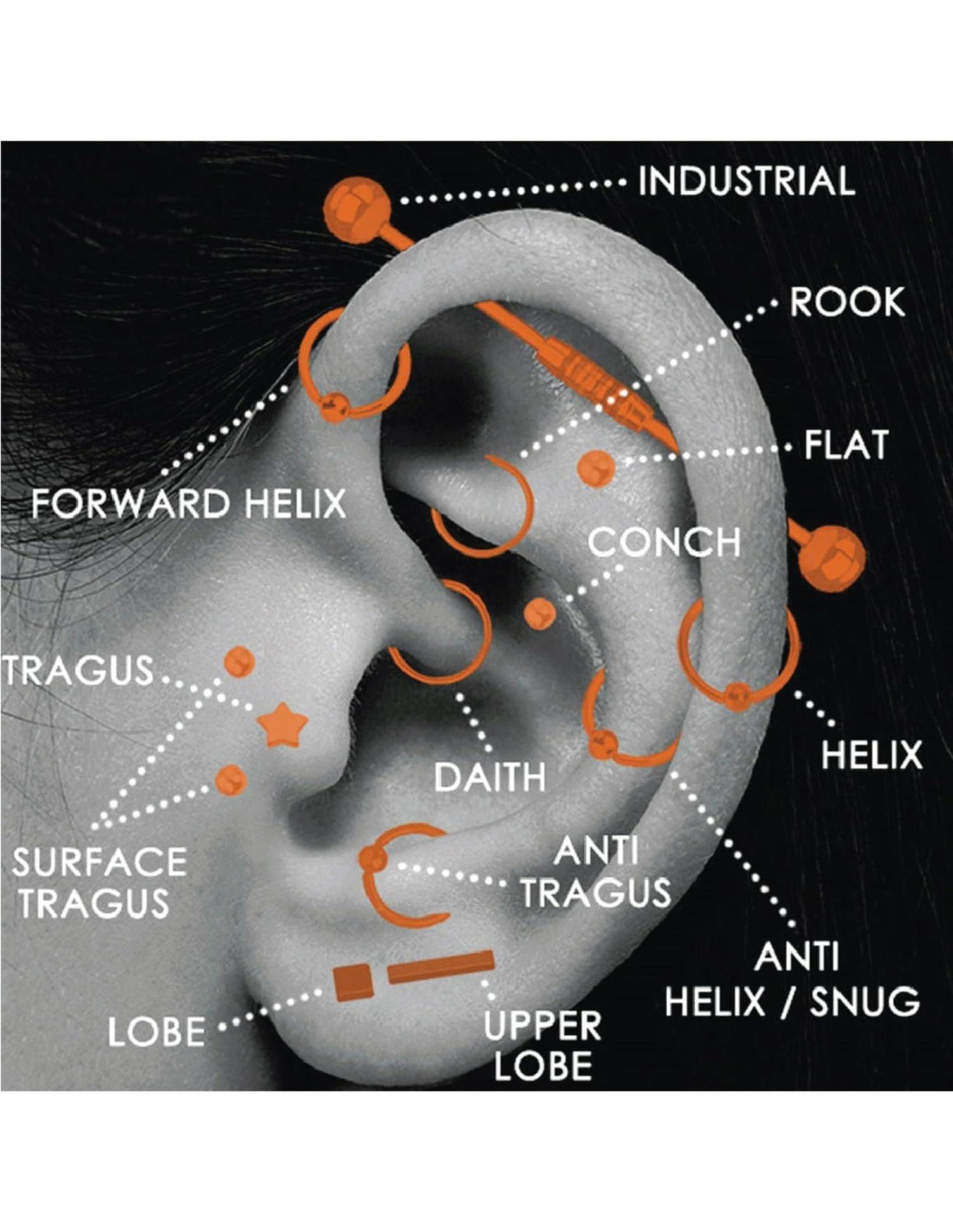 - PAQUETE DE VALOR: Kit Profesional Completo Incluye Herramientas y Joyería Necesarias para Realizar Piercings Seguros en Orejas, Cara y Cuerpo: Cartílago de Oreja, Nariz, Septum, Tragus, Labret, Labio, Monroe, Medusa, Pezón, Ombligo, Helix, Daith, Lengua, Smiley, Snug, Ceja.