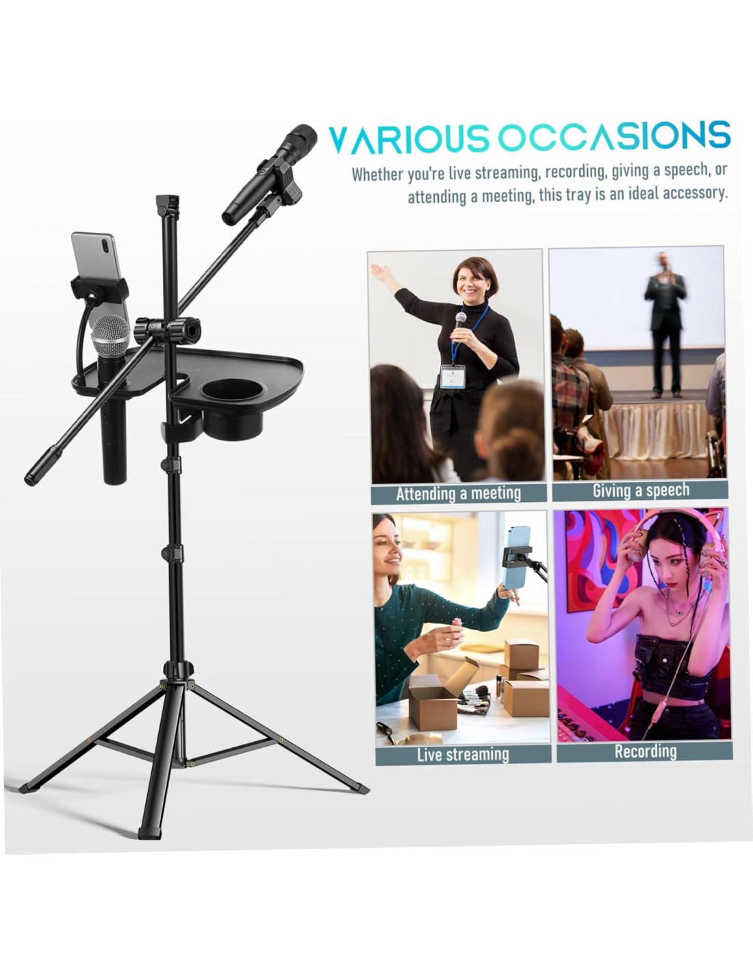 - Accesorio conveniente: la bandeja del soporte de micrófono permite un fácil acceso a tus artículos, asegurando que todo lo que necesitas esté al alcance de la mano, estante para micrófono, Accesorios para Soporte de Micrófono.