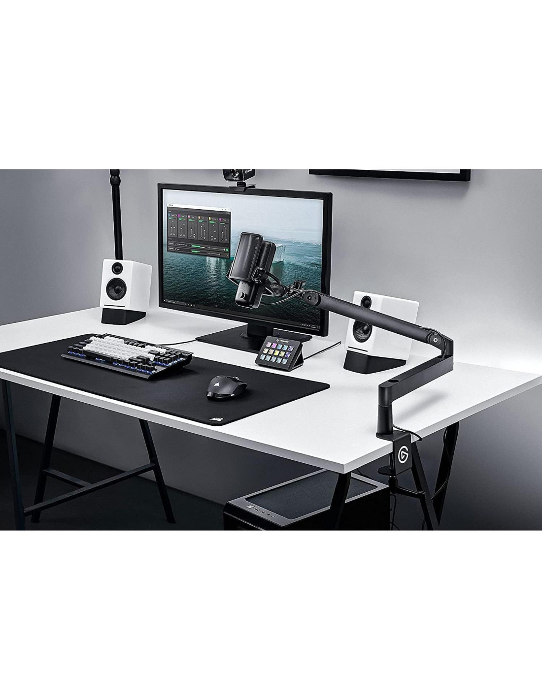 Un brazo de boom de calidad de estudio para tu micrófono premium, el Wave Mic Arm LP se sitúa por debajo de la línea de los hombros para una vista sin obstrucciones. La rotación horizontal de 360 grados y la rotación vertical de 90 grados permiten la máxima maniobrabilidad. Los canales de cable integrados con cubiertas magnéticas mantienen tu configuración ordenada, mientras que los adaptadores de rosca aseguran la compatibilidad con montajes de micrófono estándar. En la caja Wave Mic Arm LP 1/4"" a 3/8"" y 1/4"" a 5/8"" adaptadores llave Allen guía de inicio rápido especificaciones técnicas alcance horizontal: 740 mm / 29.1 clearance del brazo inferior del escritorio: 70 mm / 2.8 in clearance del brazo superior del escritorio: 160 mm / 6.3 in rotación horizontal: 360 grados (base y codo) rotación vertical: 90 grados hacia arriba / 60 grados hacia abajo (codo) abrazadera de escritorio: expandible hasta 60 mm / 2.4 in carga máxima: 2 kg / 4.4 lbs (micrófono y accesorios)