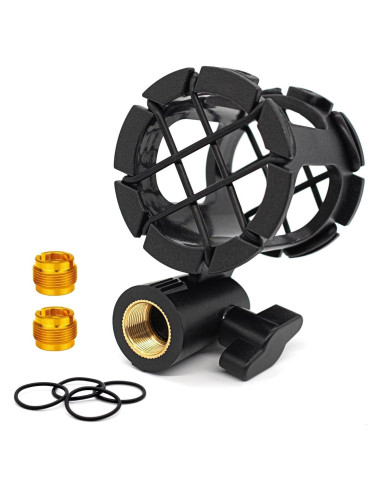 - [CARACTERÍSTICAS] Este soporte de micrófono reducirá en gran medida el ruido del micrófono causado por vibraciones, este soporte de micrófono se puede ajustar fácilmente con su perilla ajustable con goma, se puede quitar o colocar rápidamente, el soporte de choque se puede orientar tanto horizontal como verticalmente con su soporte rotatorio ajustable