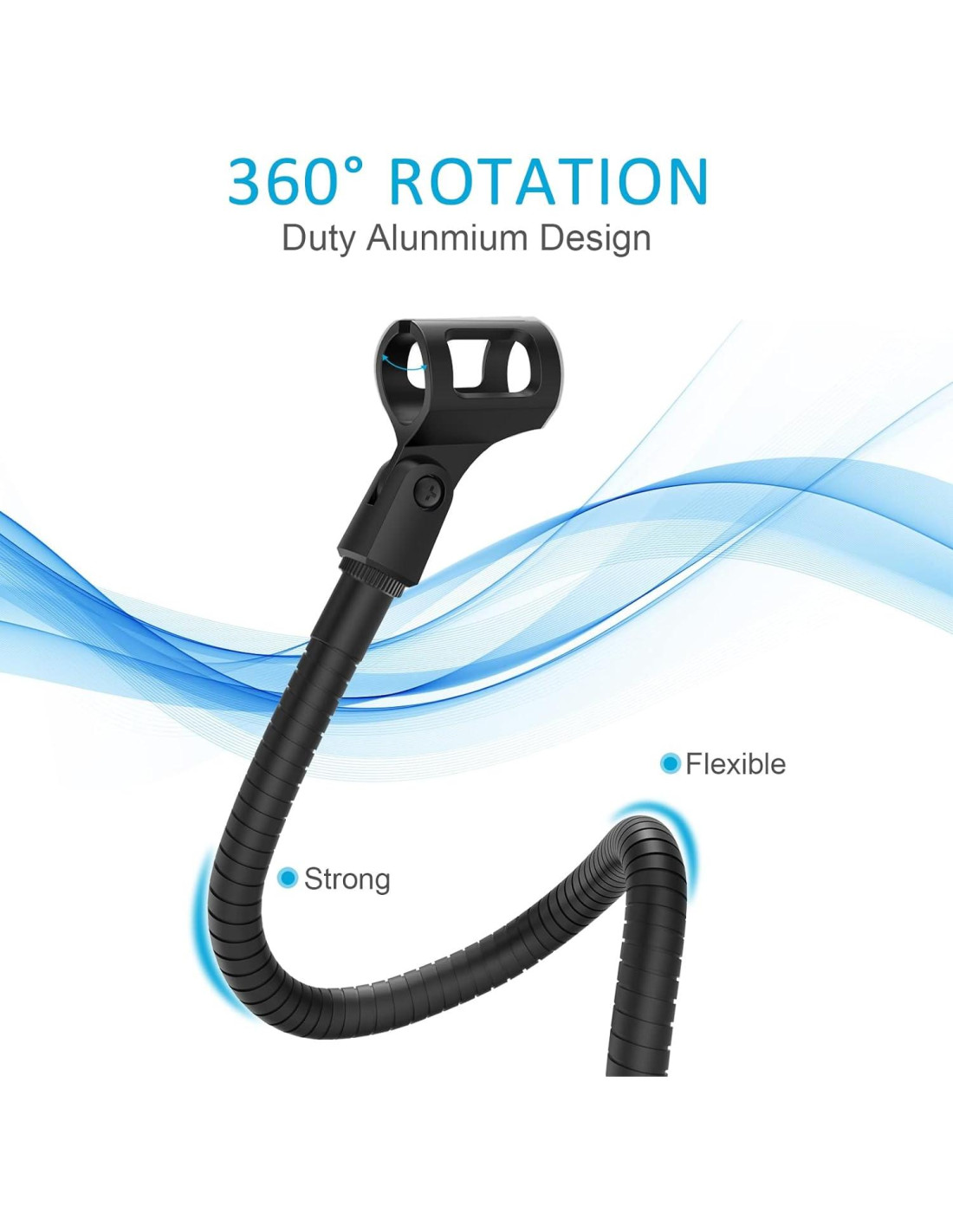 - [Flexibilidad de 360] Experimenta una flexibilidad completa con el brazo flexible ajustable de este soporte de micrófono. Gira sin esfuerzo en la abrazadera de la mesa, permitiéndote apuntar el micrófono en cualquier dirección deseada. El brazo está diseñado para doblarse hacia adelante y hacia atrás en un rango de 0 a 360 grados en la base, proporcionando un movimiento sólido y suave para una posición precisa. Nota: No puede funcionar con Blue Yeti y Blue Yeti Nano.