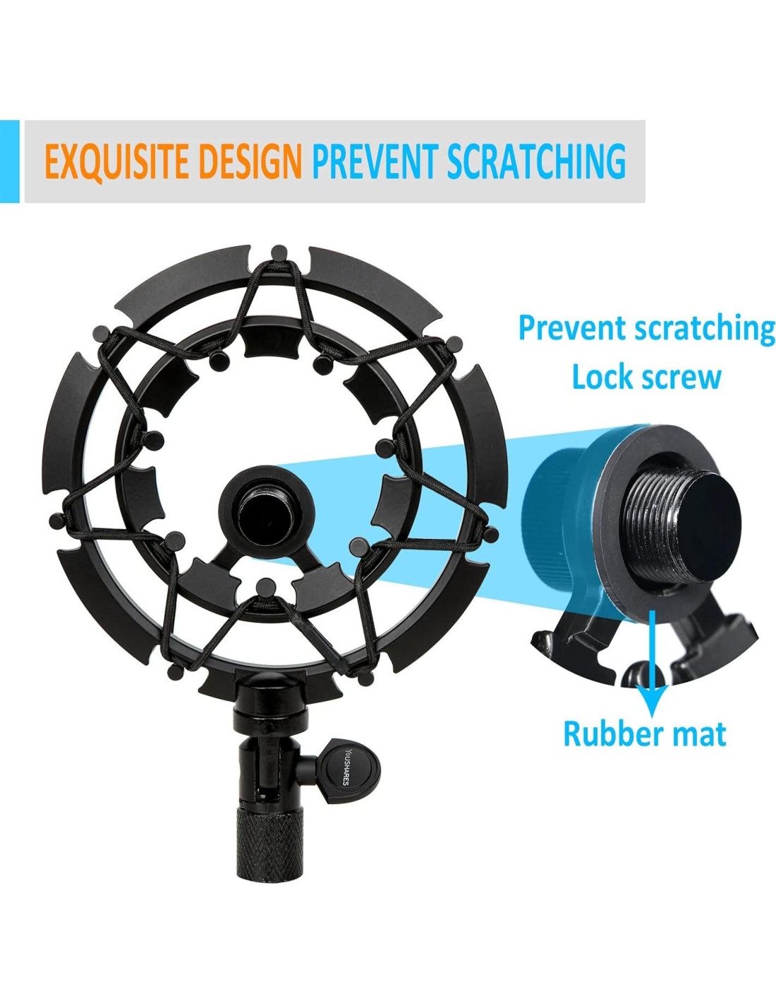 - Diseño Exquisito - Almohadilla de goma entre el tornillo de metal y el micrófono que evita rayones en tu micrófono o soporte y ajustará firmemente el tornillo.