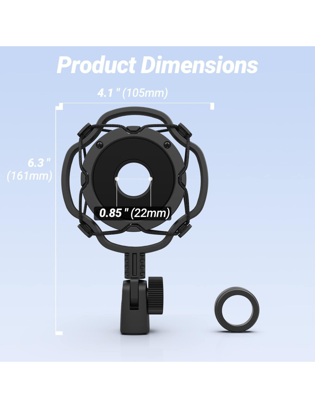 - Firmeza y Durabilidad - Dos bandas elásticas de goma están firmemente sujetas a los clips del soporte antichoque, aumentando su durabilidad. El diseño amigable no obstaculiza las teclas de función y los conectores. El soporte antichoque tiene contacto compacto con la parte inferior de tu micrófono para que no se afloje ni se caiga fácilmente.