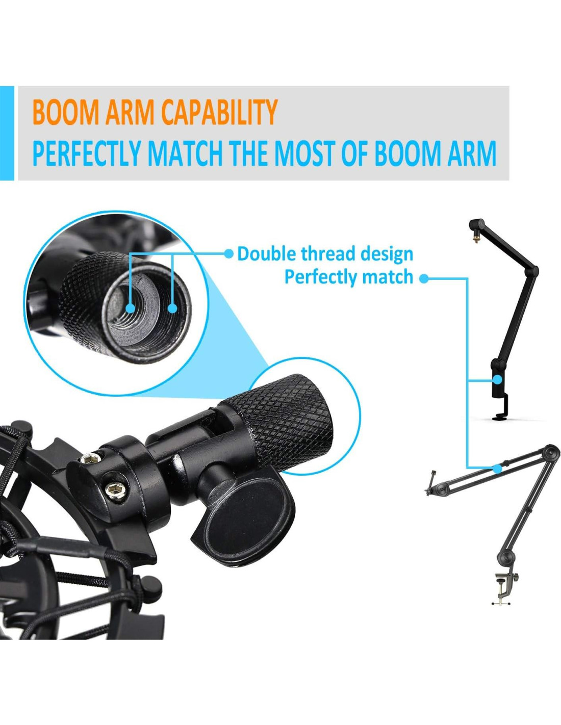 - Compatibilidad - Coincide perfectamente con la mayoría de los soportes de brazo. El hilo de doble tamaño está diseñado especialmente para adaptarse a soportes de micrófono de EE. UU. y UE. Nota: Soporte de Micrófono y Micrófono SM7B No Incluidos.