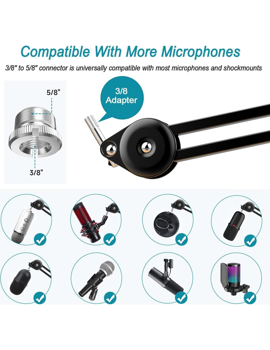 - SE ADAPTA A LA MAYORÍA DE LOS MICRÓFONOS - Ya sea que estés conectando un micrófono para juegos, un micrófono para podcast o un micrófono de estudio, este brazo de micrófono soportará tu pesado micrófono Shure SM7B y el micrófono Blue Yeti.
