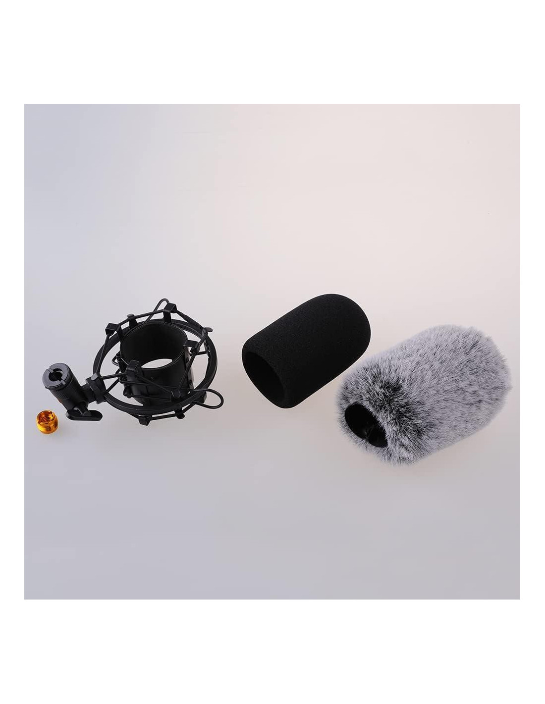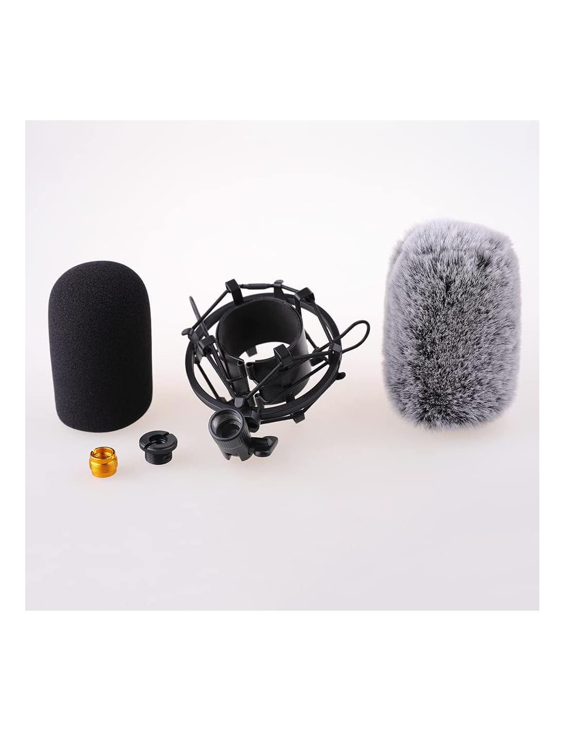- NOTA: EL SOPORTE DE CHOQUE viene con 2 tornillos adaptadores (1 dorado y 1 negro) Y 1 cubierta de espuma 1 Muff de viento de felpa