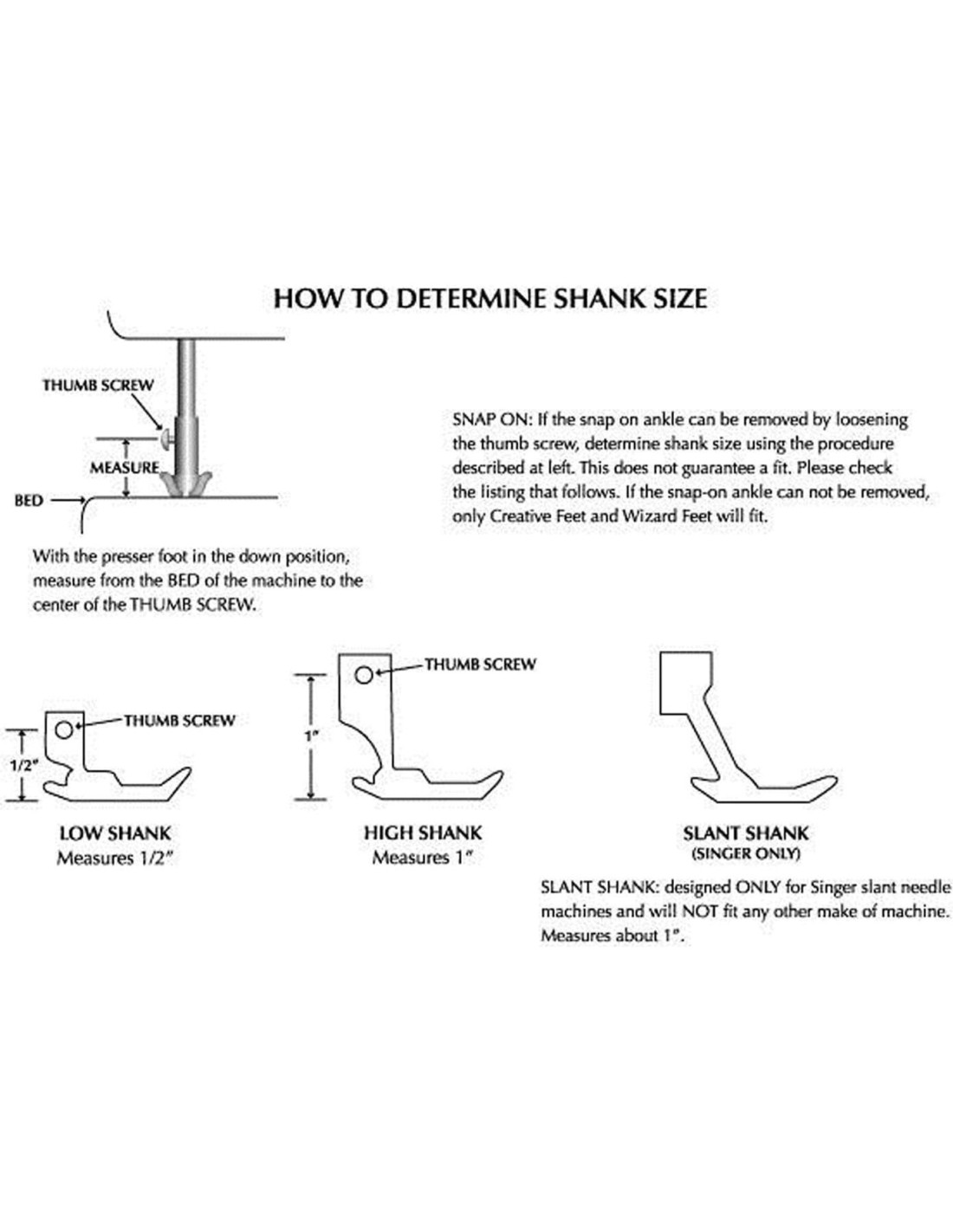 - UNIVERSAL: Se adapta a la mayoría de las máquinas Brother, Singer, Janome, New Home, Elina, Pacesetter, Elnita, Pfaff, Viking, Juki, Kenmore y máquinas domésticas con un sistema de bajo shank. NO es adecuado para máquinas de coser industriales y MINI.