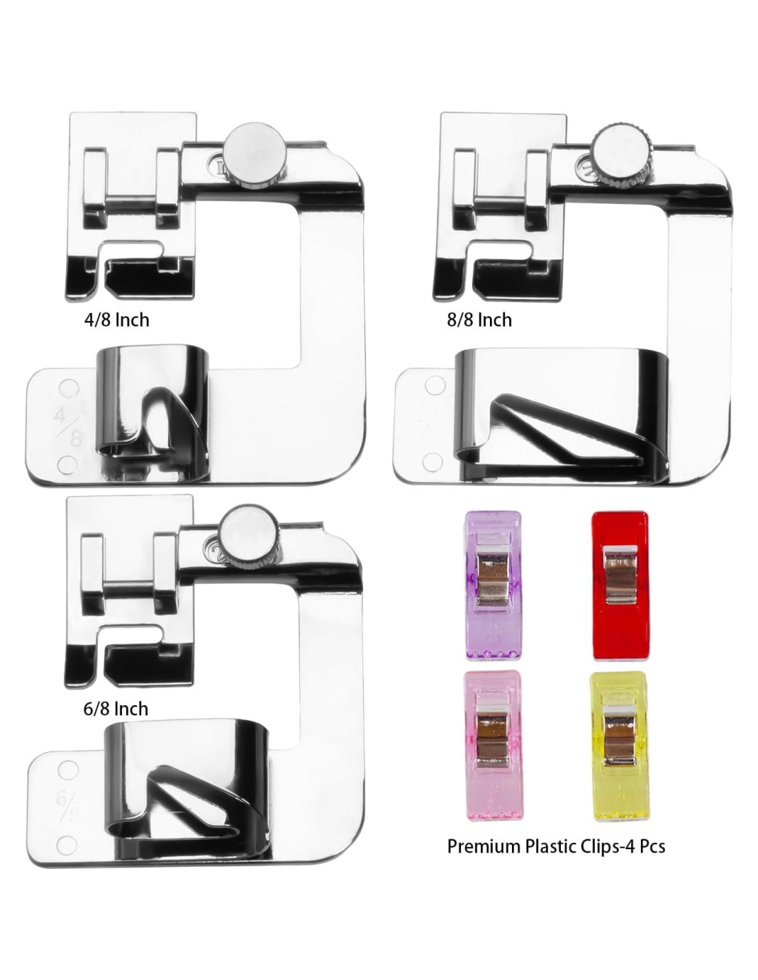 - Diseño fácil de usar: El diseño enrollado de nuestros pies de dobladillo simplifica el proceso de plegado, sujetando la tela de manera segura para mantenerla alineada sin esfuerzo. Perfecto tanto para principiantes como para costureros experimentados, estos pies hacen que el dobladillo sea rápido y sin complicaciones, incluso en telas desafiantes.
