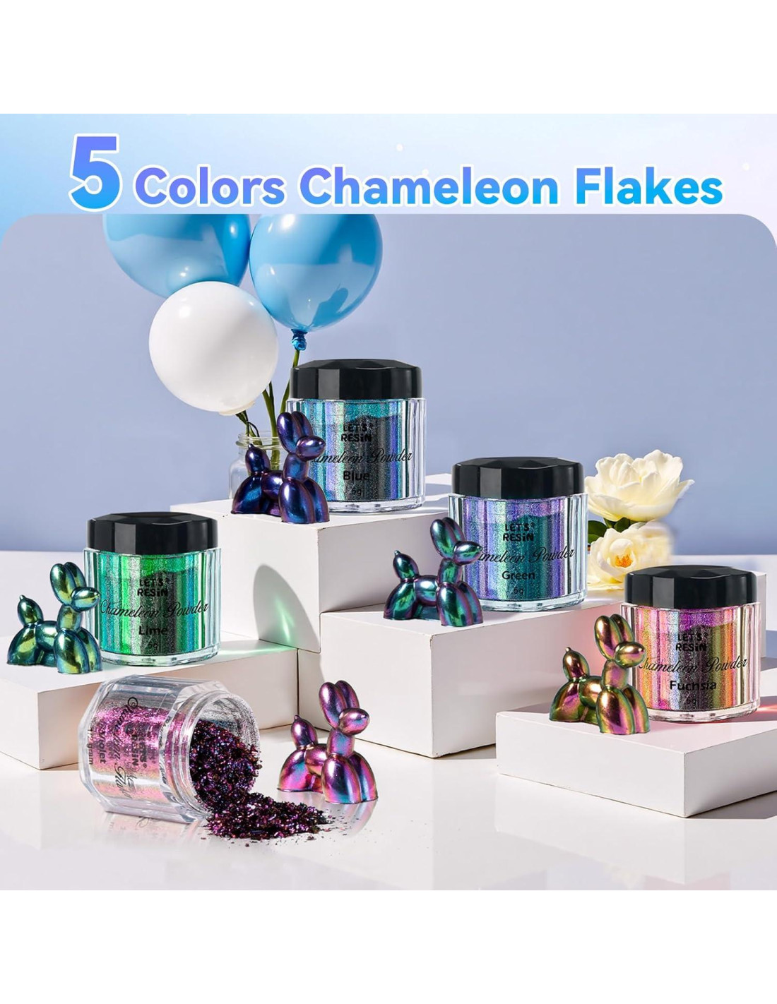 - Escamas Cameleón: LET'S RESIN da importancia a la experiencia del consumidor y controla estrictamente la calidad del producto. Si encuentras algún problema al usar nuestro polvo, no dudes en contactarnos. Haremos nuestro mejor esfuerzo para resolverlo por ti.