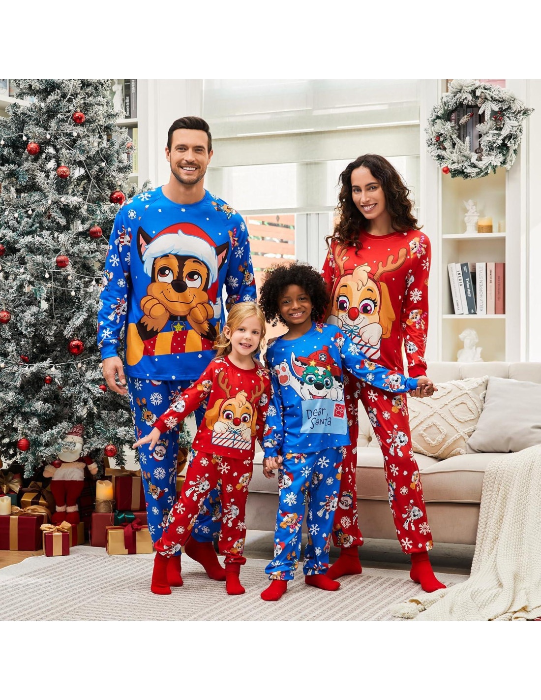 - Conjunto de pijamas navideños de Paw Patrol oficialmente licenciado para toda la familia, con adorables diseños de Chase, Marshall y los renos de Santa. Cada conjunto de pijamas está inspirado en los icónicos personajes de Paw Patrol, asegurando que el producto que compres sea un artículo auténtico y oficialmente licenciado, con material y estilo cómodos. Es perfecto para que las familias disfruten de cálidos momentos navideños juntos.