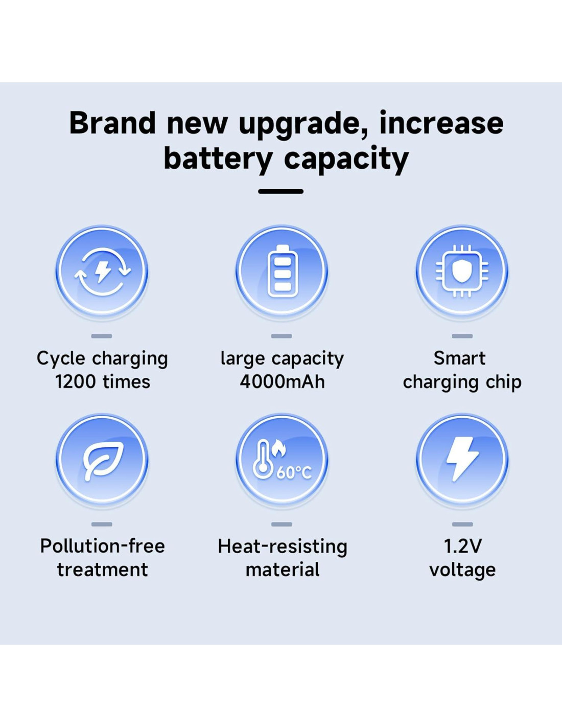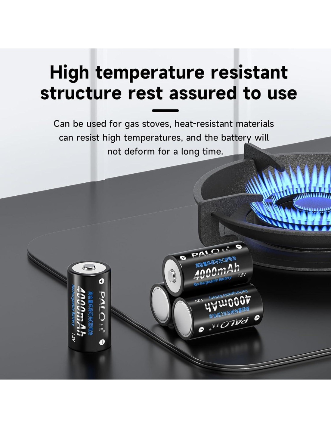 - Baterías recargables de tamaño C equivalentes a o más de 1200 ciclos en comparación con baterías desechables. Baja autodescarga para mantener el 80% de carga después de no usarse durante 3 años.