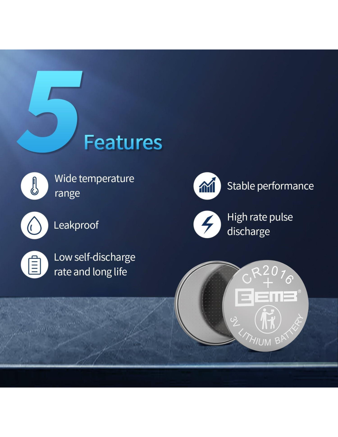 - LARGA DURACIÓN DE LA ENERGÍA Y AHORRO DE ENERGÍA-Las baterías de moneda EEMB son seguras, ecológicas, libres de mercurio, de alta presión y alta densidad de energía. Rango de temperatura de funcionamiento: -20C a + 60C. Duraderas para un rendimiento prolongado. Menos del 3% por año a temperatura ambiente. Larga vida útil efectiva. Características superiores de descarga de pulso de alta velocidad. Estabilidad de descarga continua. No se filtrará en el equipo durante el uso y durante dos años después de ser colocada en el equipo.