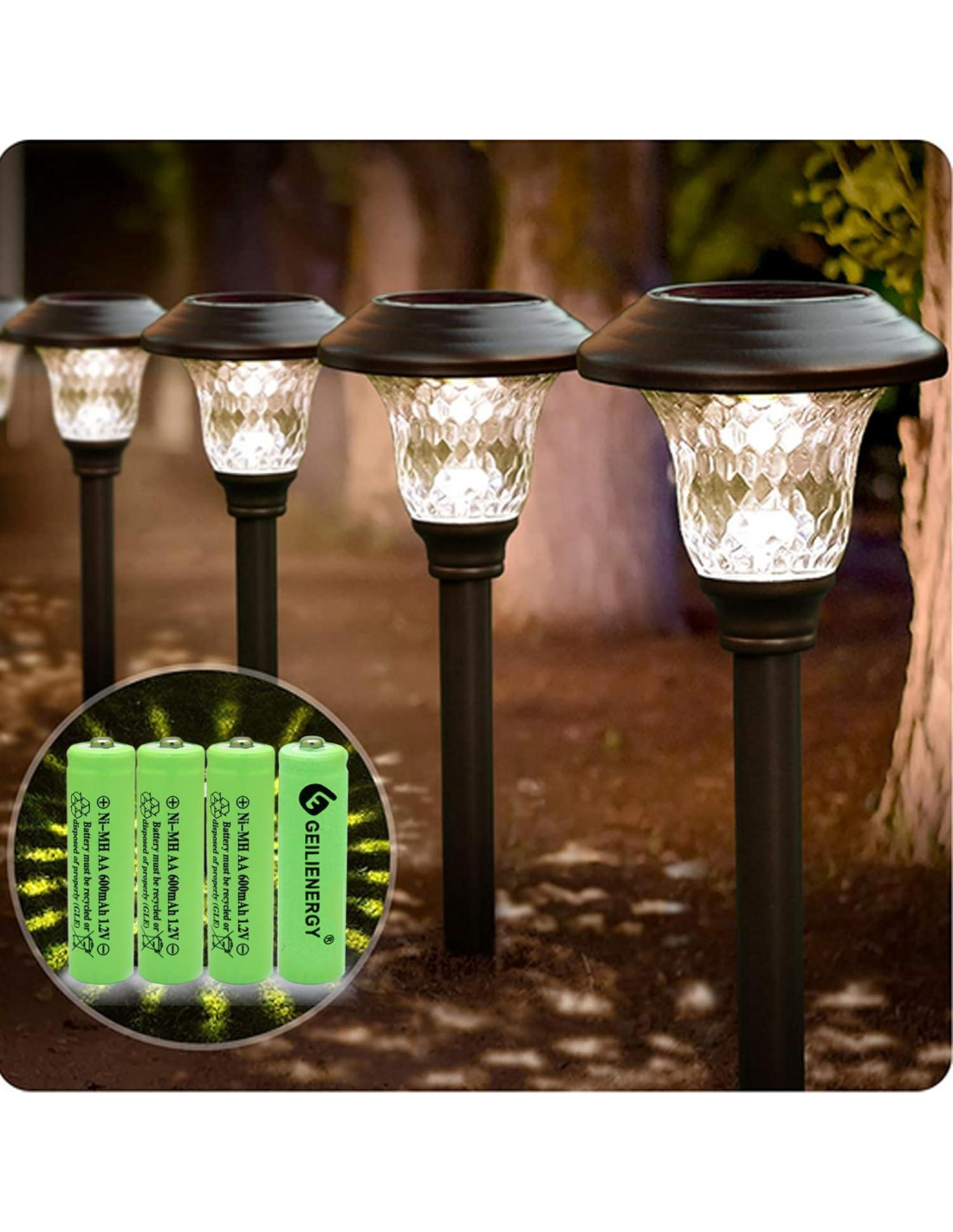 - Batería recargable Ni-MH AA 600mAh 1.2V para solar: Usa la energía de la luz solar para recargar; es fácil de instalar (Recuerda mantener encendida tu luz solar)