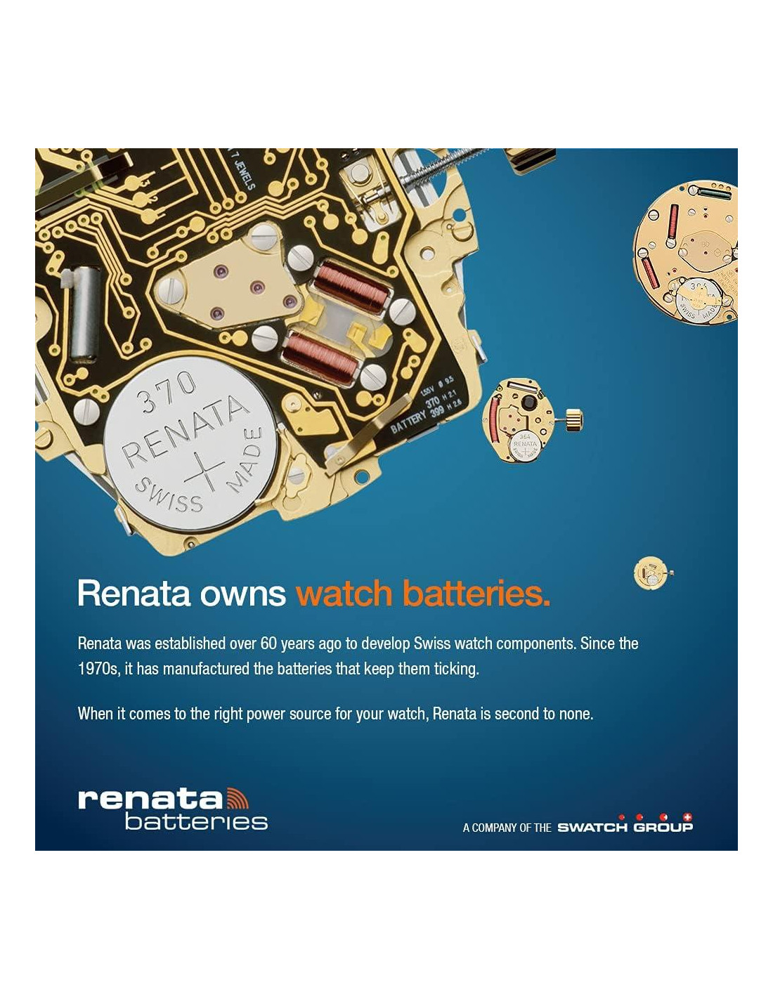 Renata fue fundada en Suiza en 1952 para producir piezas mecánicas para relojes de pulsera. En la década de 1970, su enfoque se trasladó a la investigación y desarrollo de celdas de óxido de plata de alta calidad para alimentarlos. Renata tiene experiencia en el proceso de producción de baterías de principio a fin. Su planta de producción moderna y altamente automatizada incorpora un extenso sistema de pruebas de calidad. Además de baterías para relojes, Renata fabrica celdas de litio para electrónica de consumo. La investigación, el desarrollo, la producción y las pruebas de calidad se agrupan en la sede de Itingen, Suiza. Renata está certificada ISO 9001 e ISO 14001 por Bureau Veritas (Suiza, actualizado en diciembre de 2020). 100% libre de mercurio. Dedicada a alta y baja descarga para un rendimiento óptimo. Tecnología de sellado a prueba de fugas sofisticada y retención de alta capacidad. Fecha de frescura completamente transparente. Solapa de fácil pelado para una fácil extracción de las baterías. Empaque pre-perforado para separar fácilmente los paquetes de burbujas. Desarrollada en cooperación con la Federación de la Industria Suiza de Relojes, Renata ofrece su línea de baterías de óxido de plata sin mercurio en más de 30 tamaños. Estas baterías de calidad están diseñadas para alimentar relojes y dispositivos electrónicos que requieren energía compacta, duradera y de bajo voltaje. Renata es una empresa del Grupo Swatch junto a marcas suizas reconocidas que incluyen Swatch, Tissot, Longines y Omega. Renata ofrece baterías de litio de 3 voltios en una amplia gama de tamaños. Probadas y aprobadas en laboratorio (Dynamis Batterien, Alemania, 2019, #UN_017_51), las celdas de moneda de litio Renata cumplen con altos estándares de calidad para brindarle una excelente confiabilidad. Úselas para proporcionar respaldo de memoria, o para alimentar sus dispositivos médicos y de fitness, equipos de medición y sensores, dispositivos de seguridad, gadgets de entretenimiento, controles remotos y más. Explore nuestra línea completa de baterías de zinc-aire Renata diseñadas para alimentar tanto dispositivos analógicos como digitales. Su alto voltaje constante asegura una larga vida útil de la batería. Empacadas en tarjetas de marcación fáciles de usar, tenemos todos los tamaños populares: 10, 312, 13 y 675. Las baterías Renata están fabricadas con precisión en Suiza y Alemania.
