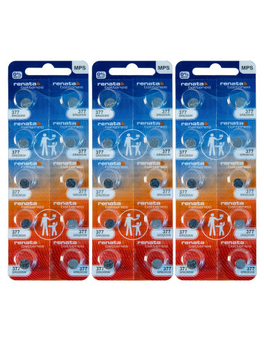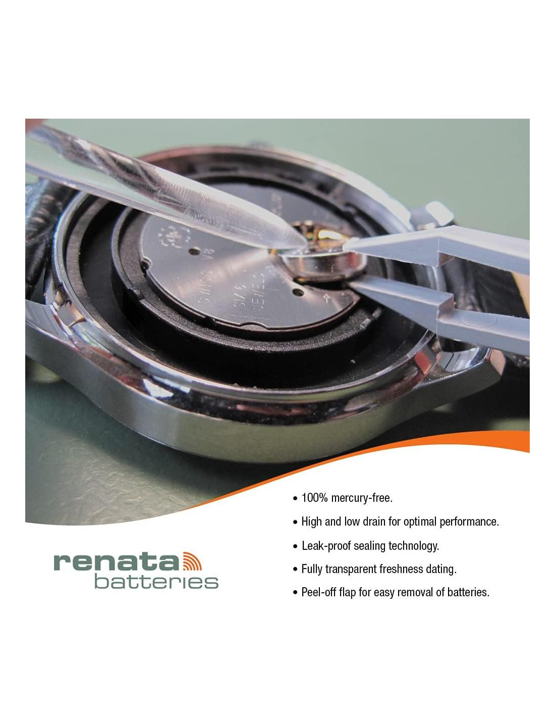 Renata fue fundada en Suiza en 1952 para producir piezas mecánicas para relojes de pulsera. En la década de 1970, su enfoque se trasladó a la investigación y desarrollo de celdas de óxido de plata de alta calidad para alimentarlos. Renata tiene experiencia en el proceso de producción de baterías de principio a fin. Su planta de producción moderna y altamente automatizada incorpora un extenso sistema de pruebas de calidad. Además de las pilas de reloj, Renata fabrica celdas de litio para electrónica de consumo. La investigación, el desarrollo, la producción y las pruebas de calidad se agrupan en la sede de Itingen, Suiza. Renata está certificada ISO 9001 e ISO 14001 por Bureau Veritas (Suiza, actualizado en diciembre de 2020). 100% libre de mercurio. Dedicada a alta y baja descarga para un rendimiento óptimo. Tecnología de sellado a prueba de fugas sofisticada y retención de alta capacidad. Fecha de frescura completamente transparente. Solapa de fácil pelado para una fácil extracción de las baterías. Empaque pre-perforado para separar fácilmente los paquetes de burbujas. Desarrollada en cooperación con la Federación de la Industria Suiza del Reloj, Renata ofrece su línea de baterías de óxido de plata sin mercurio en más de 30 tamaños. Estas baterías de calidad están diseñadas para alimentar relojes y dispositivos electrónicos que requieren energía compacta, duradera y de bajo voltaje. Renata es una empresa del Grupo Swatch junto a marcas suizas reconocidas que incluyen Swatch, Tissot, Longines y Omega. Renata ofrece baterías de litio de 3 voltios en una amplia gama de tamaños. Probadas y aprobadas en laboratorio (Dynamis Batterien, Alemania, 2019, #UN_017_51), las celdas de moneda de litio Renata cumplen con altos estándares de calidad para brindarle una excelente confiabilidad. Úselas para proporcionar respaldo de memoria, o para alimentar sus dispositivos médicos y de fitness, equipos de medición y sensores, dispositivos de seguridad, gadgets de entretenimiento, controles remotos y más. Explore nuestra línea completa de baterías de zinc-aire Renata diseñadas para alimentar tanto dispositivos analógicos como digitales. Su alta tensión constante asegura una larga vida útil de la batería. Empacadas en tarjetas de marcación fáciles de usar, tenemos todos los tamaños populares: 10, 312, 13 y 675. Las baterías Renata están fabricadas con precisión en Suiza y Alemania.