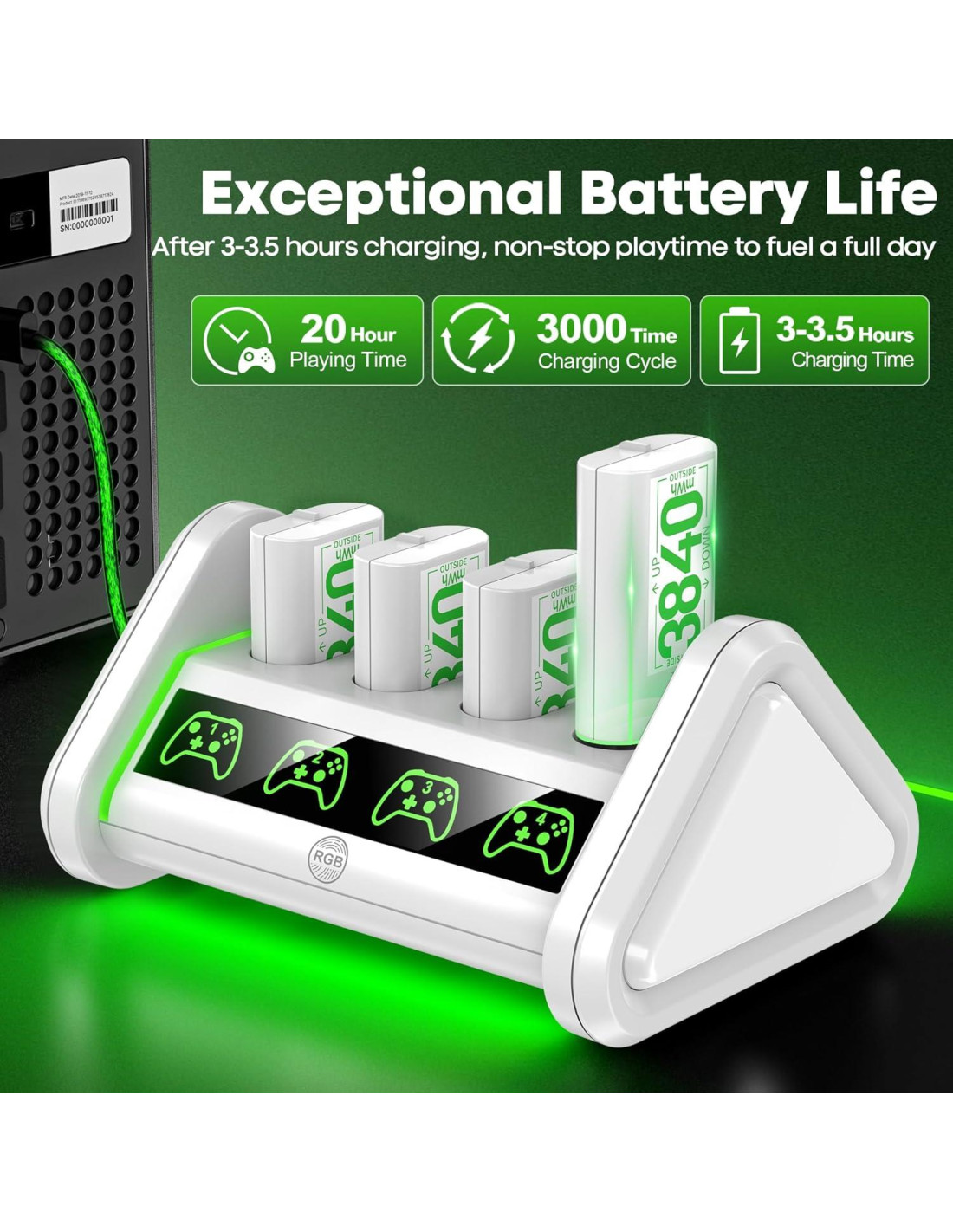 - 4 X 3840 mWh Paquetes de Batería Recargables: 4 X Paquetes de batería recargables OIVO para Xbox están diseñados especialmente para controladores Xbox Series X|S/Xbox One/Xbox One S/Xbox One X/Elite/Core, el cargador de batería para Xbox permite cargar 4 paquetes de baterías de Xbox simultáneamente o individualmente. Cambia tus paquetes de batería según sea necesario, lo que puede ahorrarte tiempo para divertirte más.