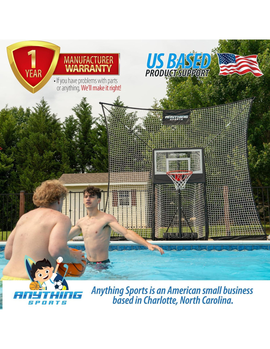 - QUÉDATE EN LA PISCINA: Quédate en la piscina con nuestro paquete de aro de baloncesto + red de protección. Los tiros erráticos ya no requieren salir de la piscina y perseguir.