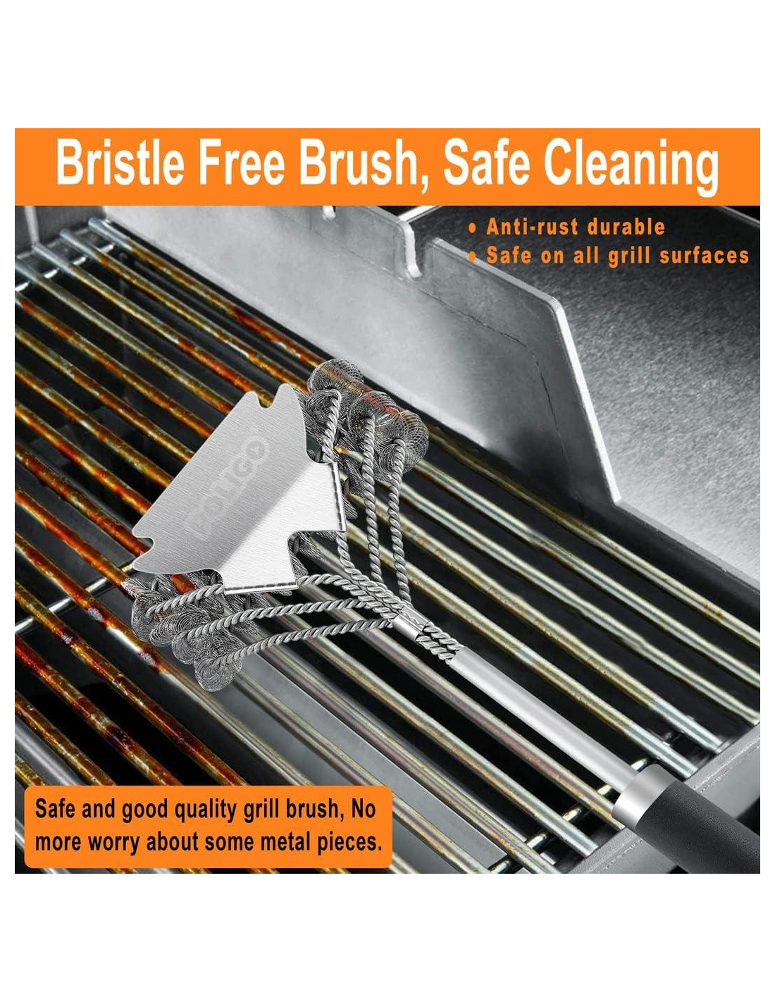 - Cepillo de parilla sin cerdas para limpieza segura: Este cepillo de limpieza de parilla con diseño de cerdas de alambre en espiral te permite fregar tu parilla con confianza una y otra vez sin romperse ni desprender metal.