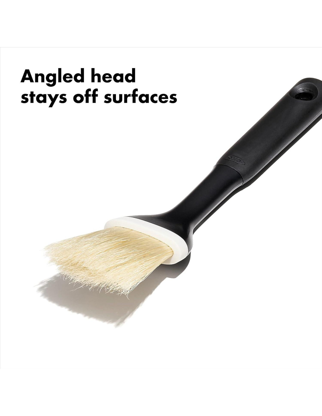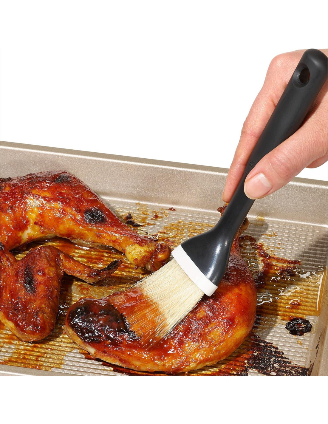 Tanto los cocineros de dulces como de salados se beneficiarán del Pincel de Pastelería Natural OXO Good Grips. Está construido con cerdas de jabalí natural, que retienen suavidad y flexibilidad. Cada cerda es gruesa para que puedas entregar más líquido de bañado y hacer más rápido el trabajo de aplicar lavados de huevo, glaseados, mantequillas, jarabes y salsas. La cabeza en ángulo mantiene las cerdas alejadas del mostrador, por lo que tanto tu pincel como tus superficies de trabajo se mantienen más limpias. El mango suave y antideslizante es cómodo de agarrar, y el pincel es apto para lavavajillas.