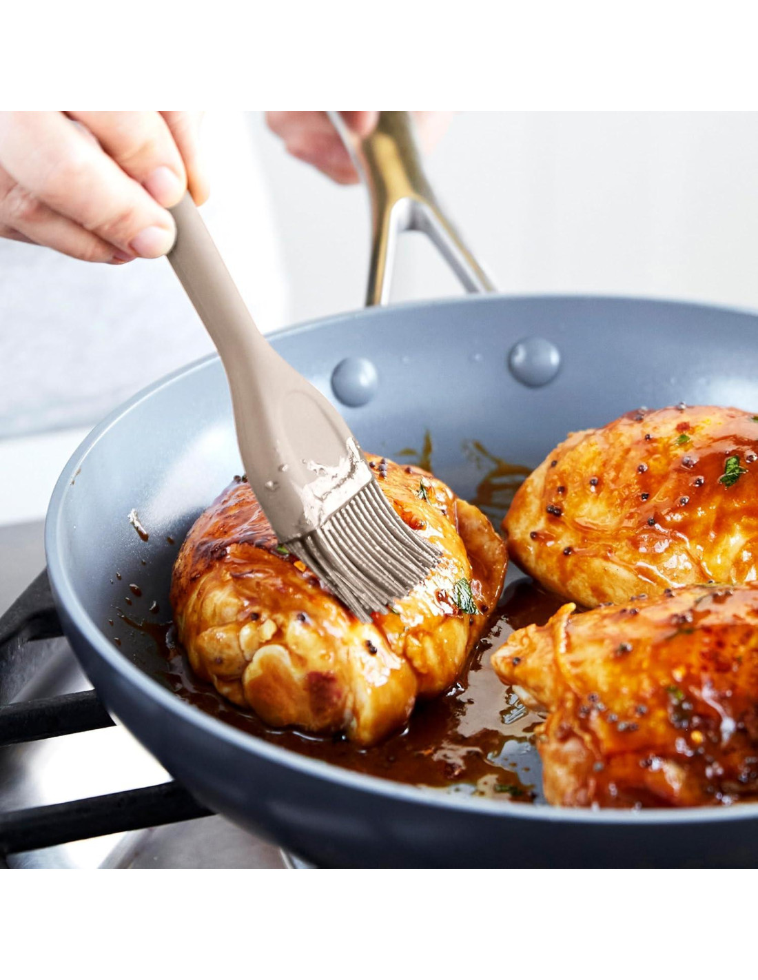 Aquí para hacer que cada paso de tu rutina sea fluido, las Herramientas de Silicona Platinum de GreenPan te permiten voltear, revolver y servir con facilidad. Cada pieza cuenta con un núcleo metálico resistente para una estabilidad ultra mientras que los bordes flexibles llegan a esos lugares difíciles de alcanzar. El mango antideslizante te brinda un agarre seguro y el exterior resistente al calor es seguro hasta 200C. Diseñadas para combinar perfectamente con sartenes de cerámica antiadherentes, las Herramientas de Silicona Platinum de GreenPan son suaves y duraderas, lo que las hace perfectas para el uso diario. Simplemente coloca estas herramientas en el lavavajillas cuando termines para una limpieza sin esfuerzo. Además, los colores llamativos añaden un toque de vitalidad a cualquier espacio.