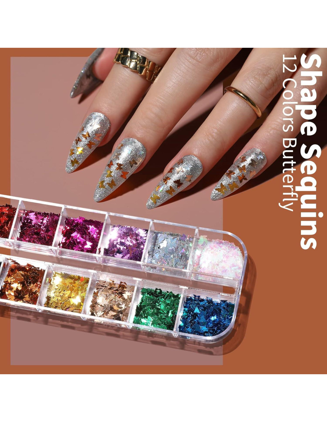- Juego Variado y Lindo: Lentejuelas en forma de mariposa hermosas en 12 colores diferentes, parecen una mariposa real pegada en tu uña o cara. El papel de oro para arte de uñas pone tus uñas en el centro de atención de una manera glamorosa. Las lentejuelas iridiscentes se pueden usar de muchas maneras debido a su flexibilidad, por ejemplo, para decoración delicada o como encaje. La pequeña piedra preciosa redonda colorida presenta un diseño de respaldo plano, se ve brillante y elegante, fácil de pegar en la uña.