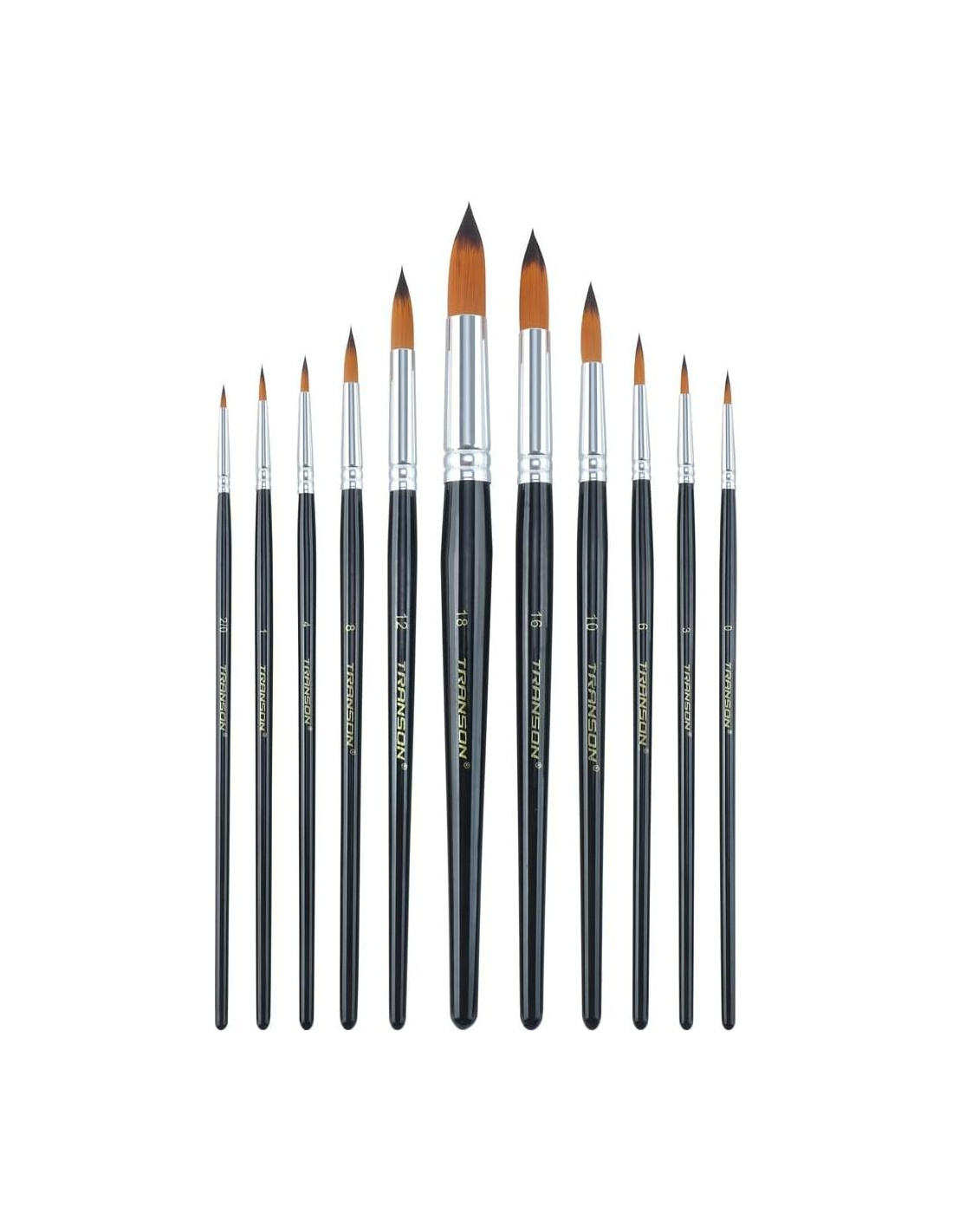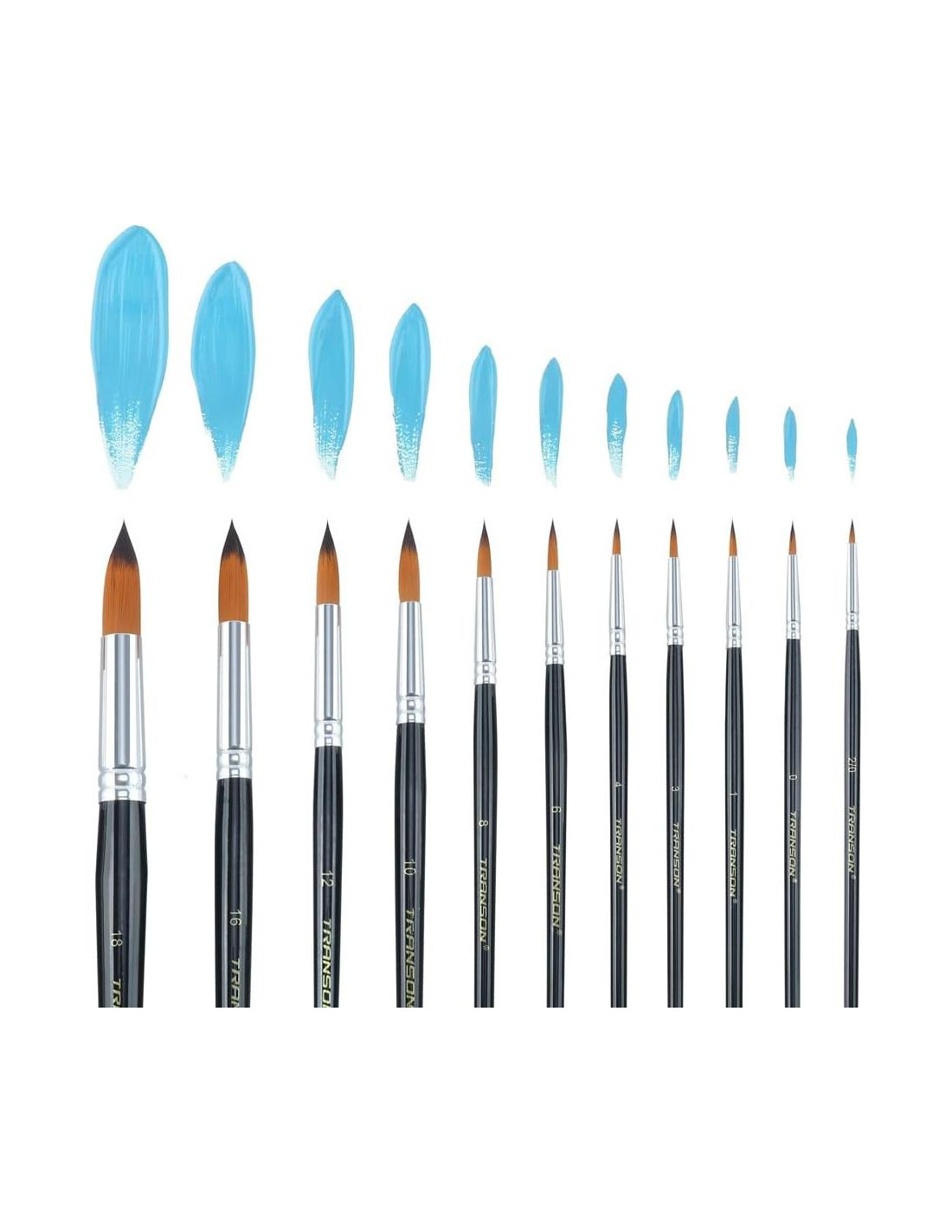 - Experimenta el set básico de pinceles redondos para artistas de todos los niveles con el set de 11 piezas de Transon, que incluye tamaños que van desde 2/0 hasta 18, con liner de detalle preciso, redondos normales y pinceles redondos grandes.