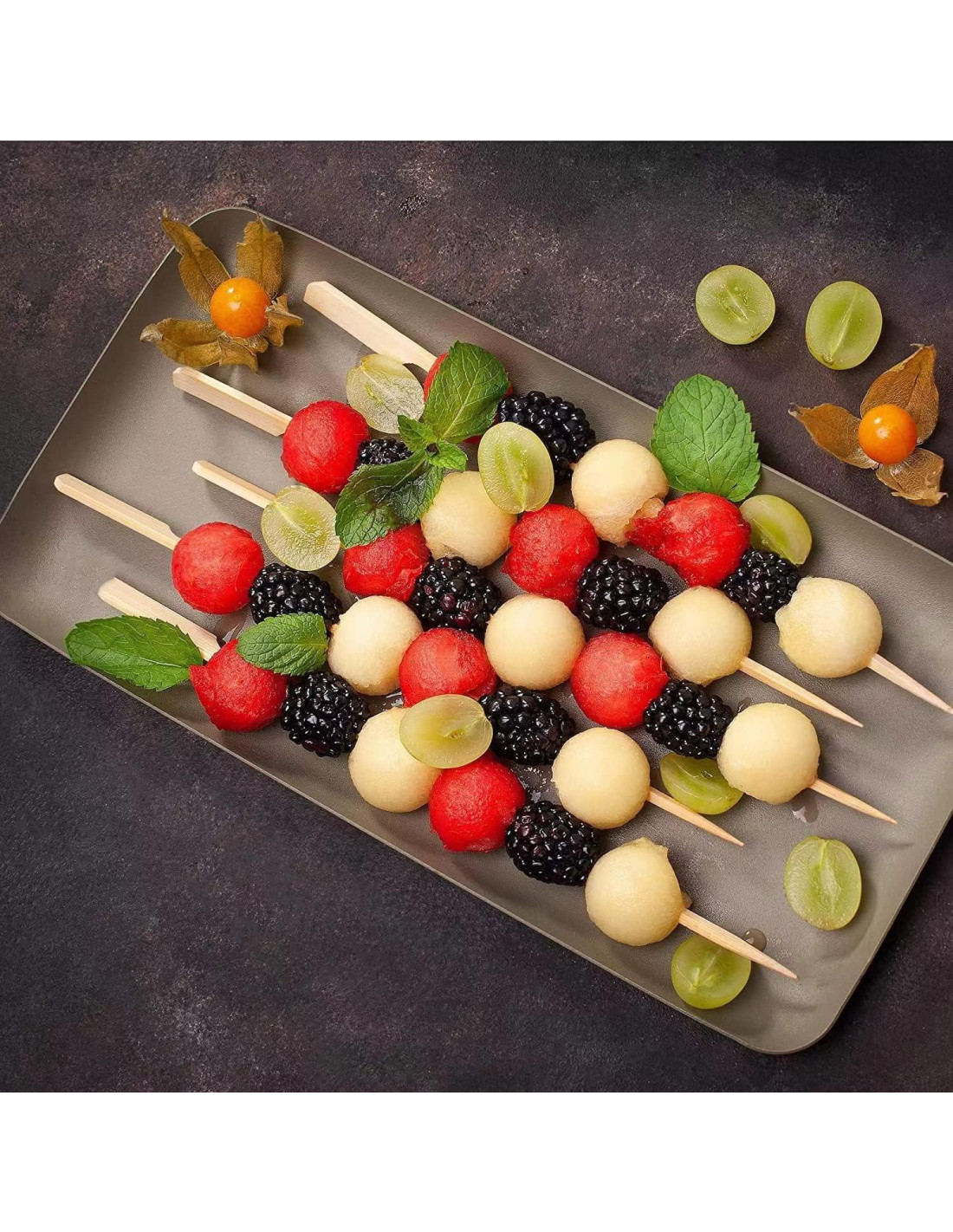 - Escena de aplicación amplia - Como herramienta de servicio, nuestras brochetas de paleta de bambú son perfectas para palillos de cóctel, canapés, kebabs, parrillas, BBQ, sándwiches, mini hamburguesas, fuente de chocolate o incluso frutas. También pueden ser utilizados como palillos de cóctel. Es una herramienta imprescindible para caterings, fiestas, picnics y otras ocasiones.