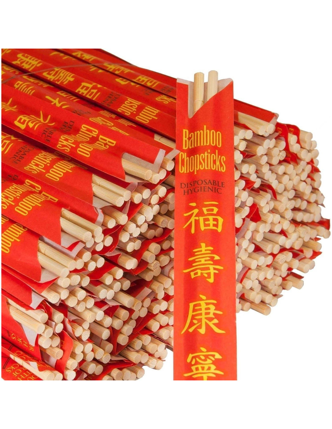 - PRÁCTICOS y ESTILOSOS: Cada par de palillos viene en una funda de papel. Este empaque atractivo presenta escrituras chinas que dicen 'Buena Suerte, Larga Vida y Bienestar'. La parte posterior de cada funda tiene instrucciones sobre cómo usar los palillos, una elección perfecta para restaurantes y usuarios principiantes. La funda de papel ayuda a mantener cada par juntos y listos para usar. La funda también puede proporcionar una experiencia gastronómica más sanitaria, ya que el personal del restaurante nunca tiene que tocar los palillos directamente.