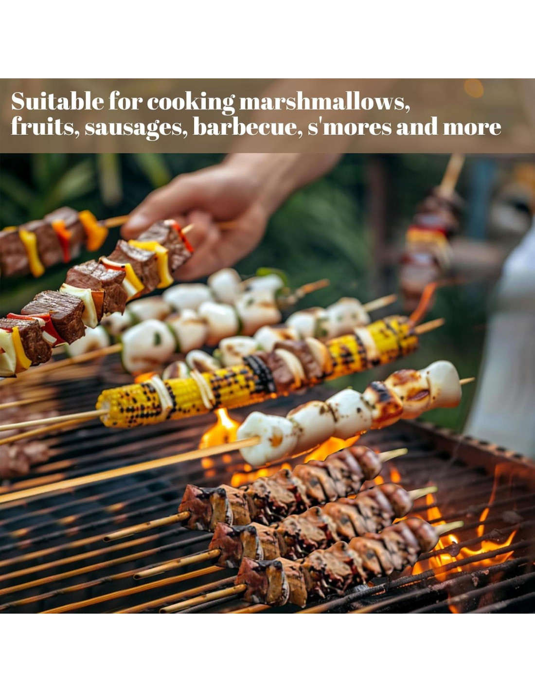 - [Brochetas para Smores] Obtendrás 70pcs de largos palitos de bambú para asar malvaviscos, suficientes para múltiples excursiones de senderismo/camping o múltiples fiestas de barbacoa.