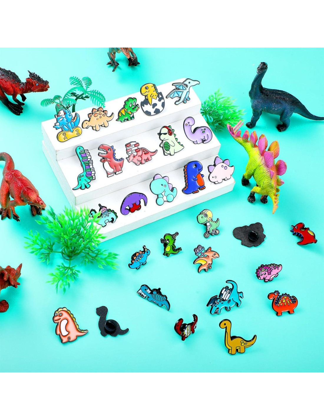 - Diseño de tema de dinosaurio: estos pines de dinosaurio están diseñados con patrones clásicos de dinosaurios, la estética elegante crea el aspecto ideal para diversas ocasiones