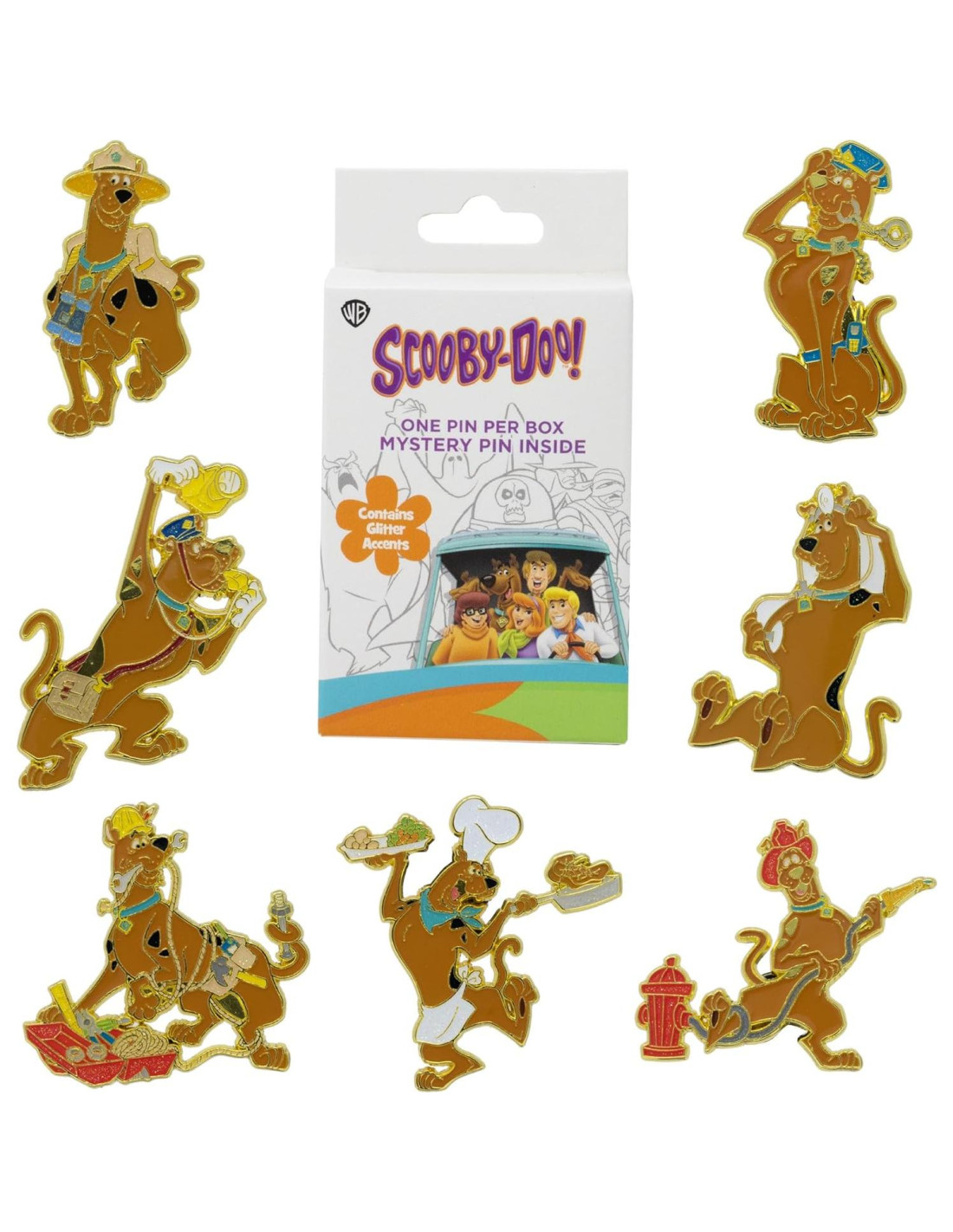 - Cada Caja Sorpresa de Pin Coleccionable de Scooby Doo contiene un pin de esmalte duro con acentos de brillo que presenta una pose misteriosa de Scooby Doo al azar.