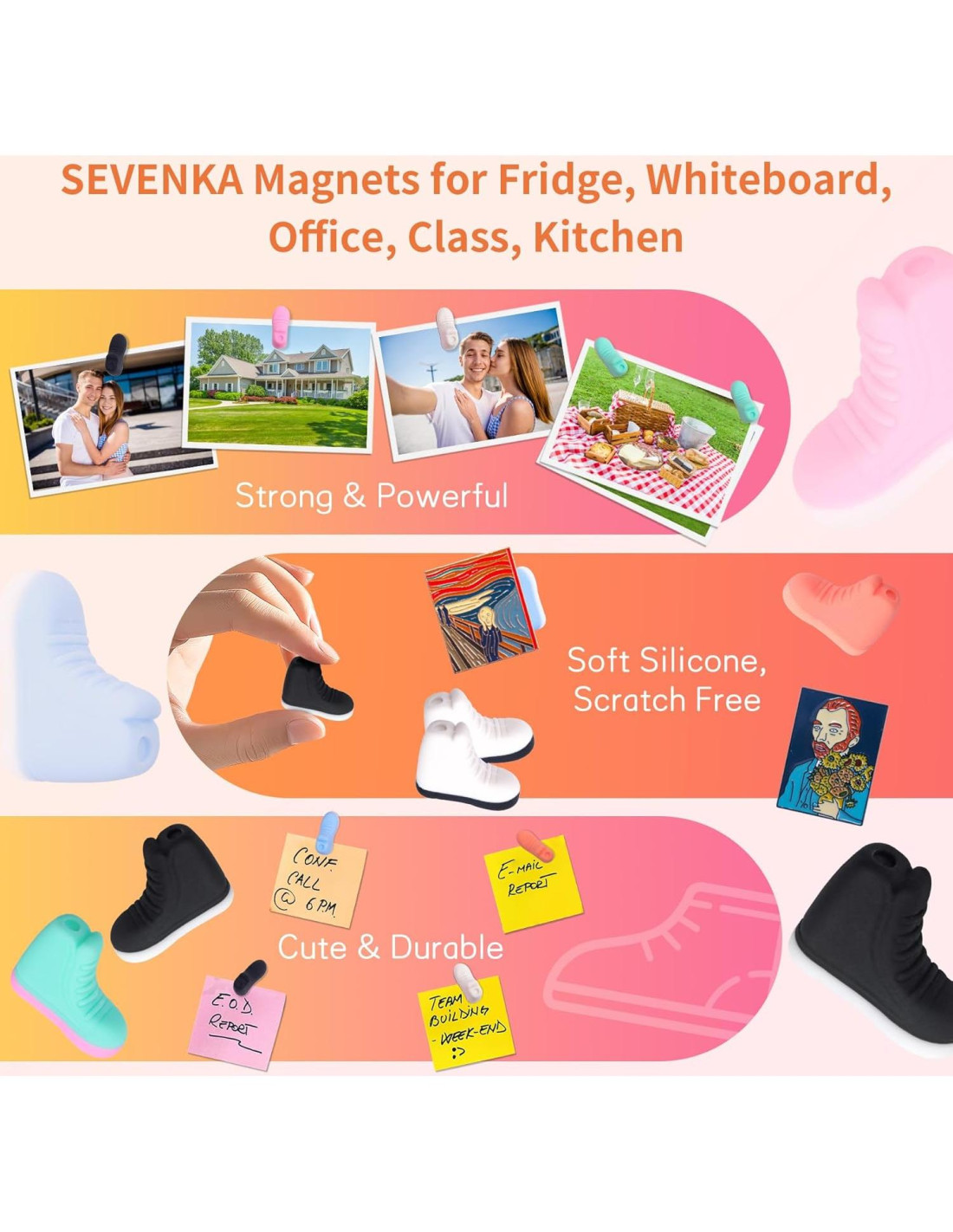 - Regalo de Cumpleaños, Garantía de por Vida, Convierte Pines de Esmalte en Imanes para Refrigerador: ¡Sin pines! Simplemente inserta tus pines de esmalte favoritos en los imanes de silicona suave de SEVENKA (sin agujero para pin) y transforma en imanes personalizados para refrigerador sin esfuerzo. Los soportes magnéticos para pines de SEVENKA facilitan la reutilización de pines para exhibir en superficies metálicas como refrigeradores, taquillas y tableros