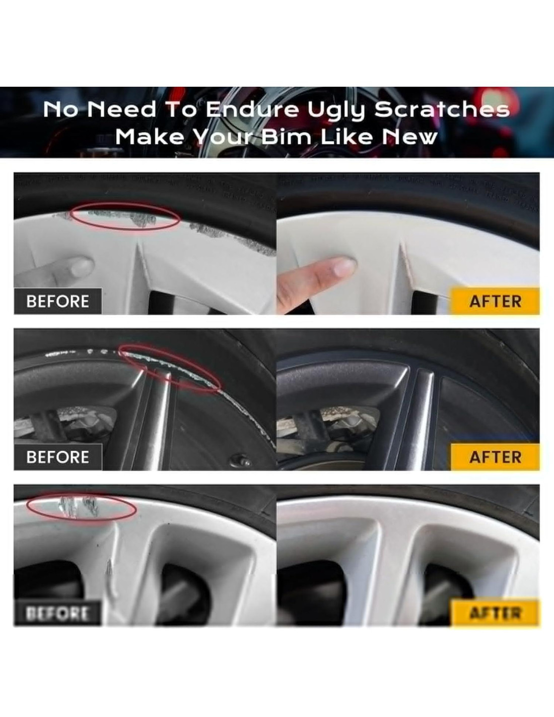 - [Kit de reparación de llantas en negro brillante] La pintura para llantas en negro brillante repara fácilmente las astillas de rocas en el parachoques, las marcas en las llantas y numerosos rayones tanto en el lado delantero como en el lado del pasajero. El uso diario provoca astillas y rayones, sabemos que una astilla fea te volverá loco, preferirás nuestra pintura de retoque para llantas en negro brillante a temer las marcas en tus llantas de aleación.