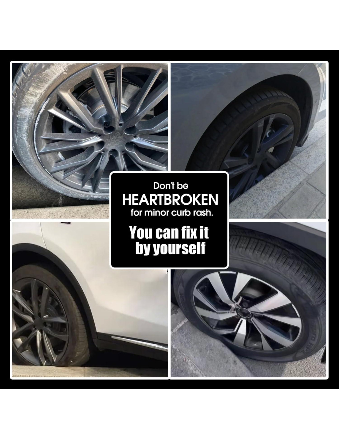- Pintura de retoque: el kit de reparación de llantas elimina fácilmente abolladuras, arañazos y daños en la superficie de las ruedas para prevenir óxido y corrosión. El kit de reparación de rasguños en la acera para llantas plateadas aplica un recubrimiento protector en la superficie de tus ruedas para hacer que se vean como nuevas