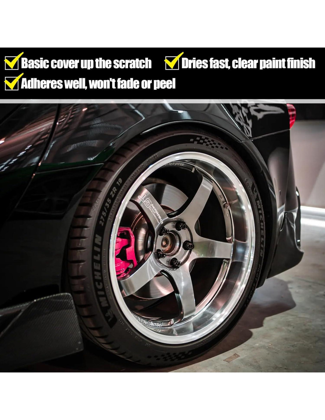 - Rápido y fácil: este removedor de arañazos de llanta de coche es fácil de usar. Simplemente limpia la superficie y agita durante aproximadamente 1 minuto para mezclar bien. Un bolígrafo funciona bien para pequeños chips, un pincel cubre abolladuras más grandes, y para arañazos más profundos, se requieren de 3 a 5 capas. Solo toma 10 minutos secar