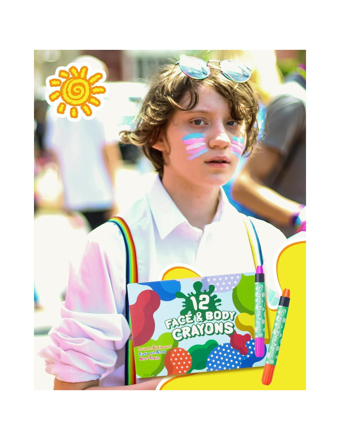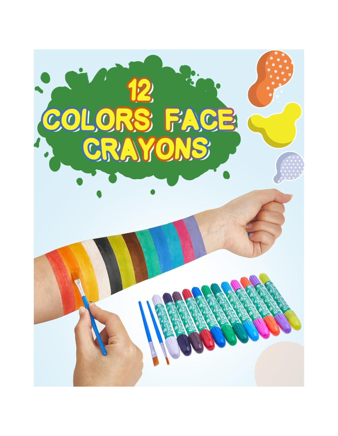 - Seguro para la Piel y No Tóxico: Hecho de glicerina vegetal, nuestros crayones de pintura facial son todos libres de gluten, no tóxicos y seguros para pieles sensibles. Antes de usar, recomendamos realizar una pequeña prueba en la piel debido a las condiciones individuales de la piel