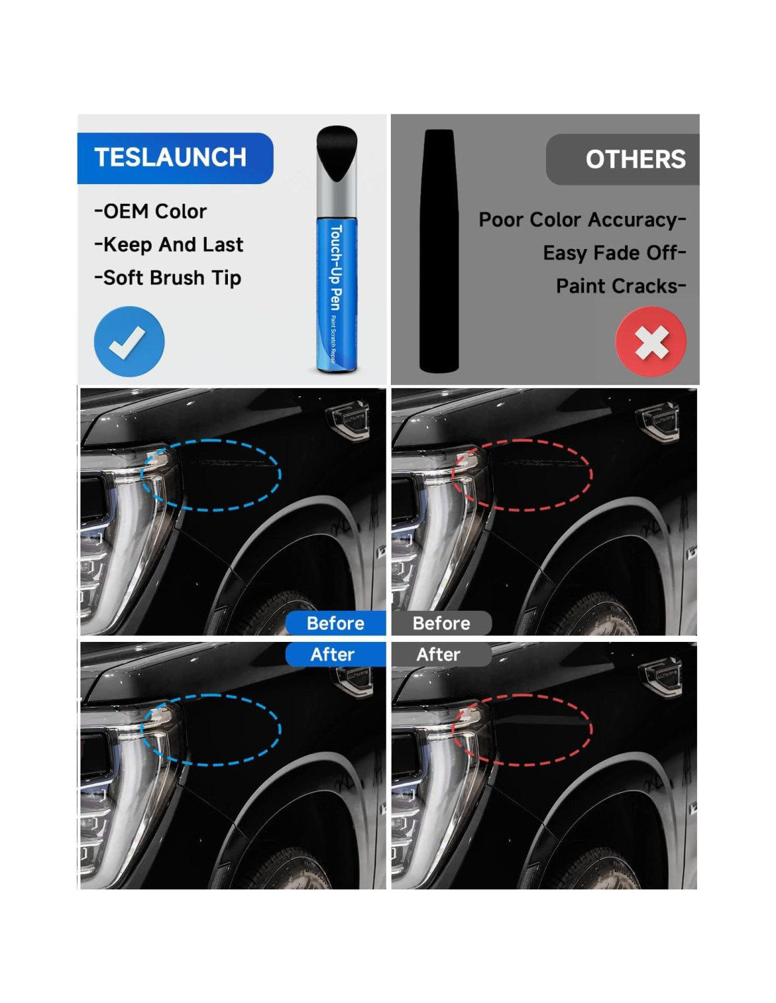 - Aplicación Rápida y Fácil: ¡No se necesitan habilidades profesionales! Solo agita durante 30 segundos y aplica con el pincel incluido (para abolladuras) o el lápiz de precisión (para chips). Se seca en 10 minutos a temperatura ambiente. Perfecto para reparaciones de bricolaje en tu garaje o entrada.