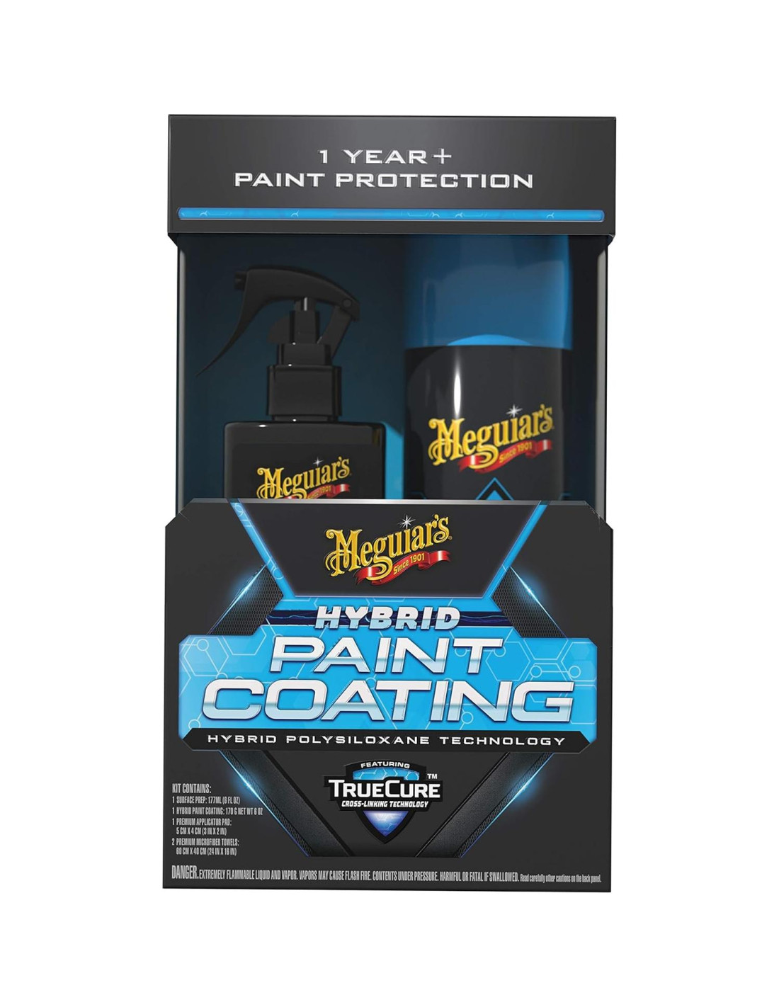 El recubrimiento de pintura híbrido de Meguiar's es una hazaña de la química moderna, combinando los mejores atributos de los recubrimientos de pintura cerámica tradicionales con las ventajas de nuestra química híbrida de polisiloxano patentada. ¿El resultado? Nuestra fórmula de protección de pintura más resistente y duradera hasta la fecha, que es increíblemente simple de aplicar. Este protectante de pintura de nivel profesional proporciona más de un año de protección de pintura duradera que supera a las ceras y selladores convencionales. La tecnología de entrelazado TrueCure ofrece resistencia química, durabilidad a largo plazo y deja la pintura resbaladiza con acción de formación de gotas de agua hidrofóbicas. Al final, obtienes protección de nivel profesional con una durabilidad extrema que te brinda los beneficios de un recubrimiento cerámico sin el alto costo. Hasta 1 año+ de protección de pintura basado en pruebas de laboratorio del ángulo de contacto del agua y modelado predictivo.