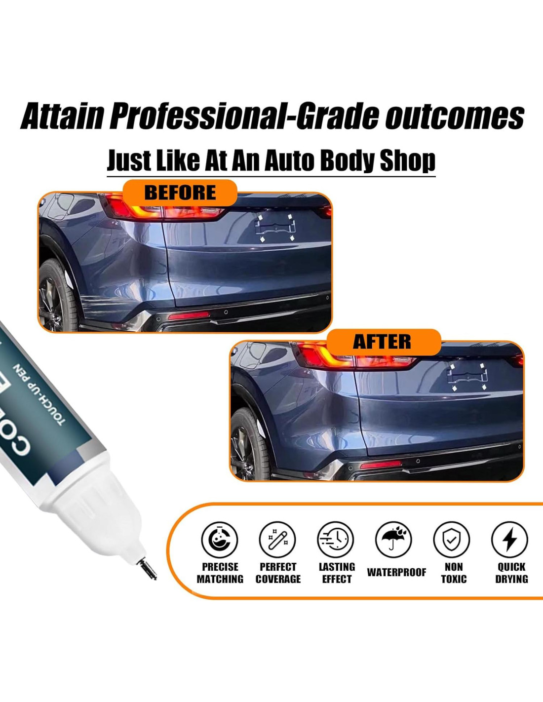 - Repara rayones rápida y simplemente. Esta pintura para reparación de rayones de automóviles tiene una fuerte adhesión, propiedades anti-óxido y a prueba de agua que protegen la superficie de su automóvil de daños adicionales. Con un diseño de uso 2 en 1, cada botella de pintura para automóviles viene con un bolígrafo y un pincel, asegurando una aplicación sin complicaciones.