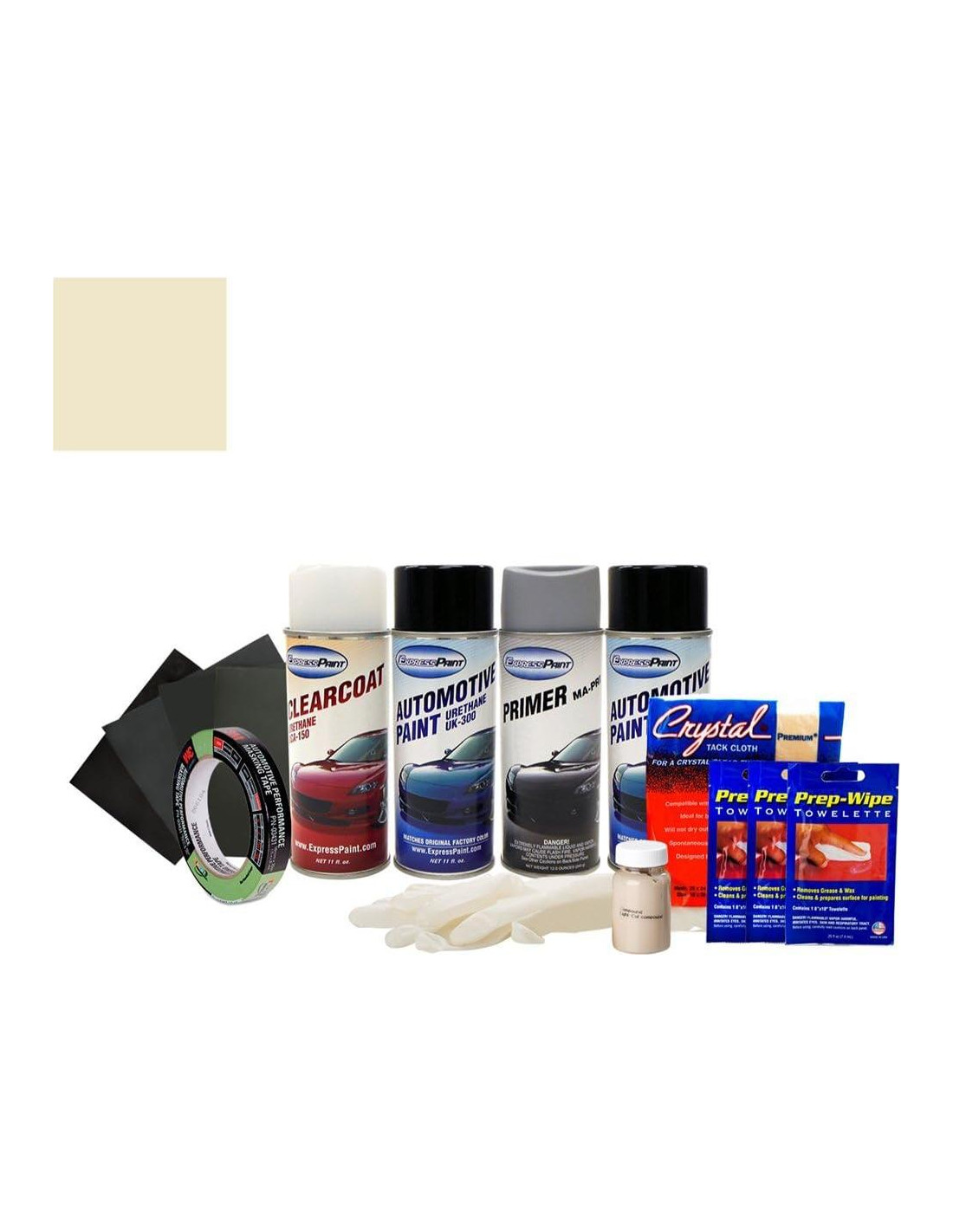 - Este es un color Tri-Coat. El paquete todo incluido incluye cuatro latas de aerosol de 11 oz. - imprimación, capa base, capa intermedia y capa transparente de alta calidad para un acabado duradero y de larga duración. También se incluyen - 2 toallitas de preparación para eliminar cera o grasa, guantes de látex, paquete combinado de papel de lija 3M, cinta de enmascarar 3M, paño adhesivo y compuesto de pulido para los mejores resultados posibles. Consulte el menú anterior para más opciones de paquetes.