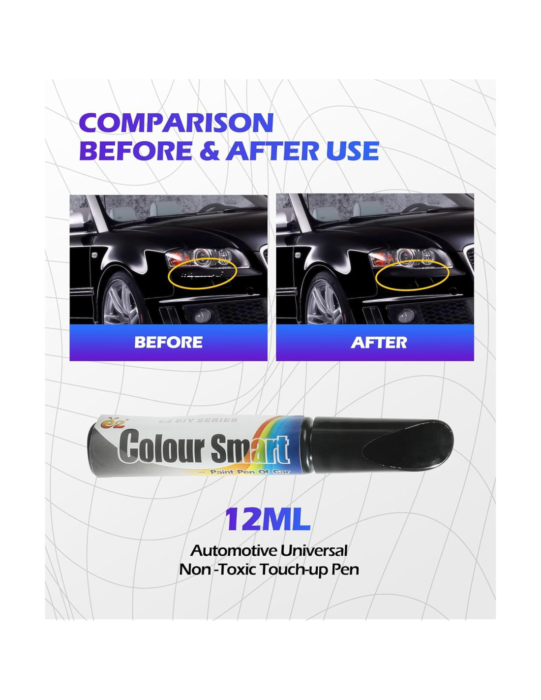 - [Fácil de usar]: Primero limpia la cera y el óxido en los rayones. Por favor, agita el bolígrafo entre 10 y 40 veces antes de usar. No apliques de atrás hacia adelante. Para rayones profundos generales, aplica de 3 a 5 capas. Nota: Por favor, prueba el color en papel de desecho primero para confirmar que el color coincide.