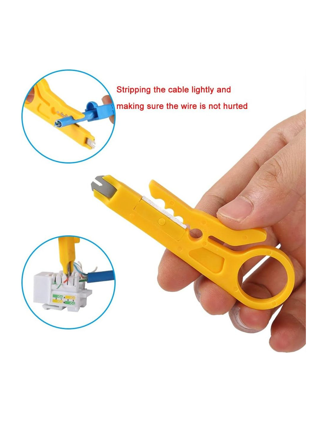 Estamos extremadamente afortunados de vivir en la era de internet. Nuestro objetivo es proporcionar productos convenientes e inteligentes a personas de todo el mundo. Continuaremos proporcionando y actualizando una variedad de productos convenientes para hacer la vida de las personas más simple y rápida. - Servicio Postventa: Si tiene algún problema con nuestros productos, no dude en enviarnos un correo electrónico. Le responderemos dentro de 12 horas. Generalmente dentro de 30 minutos. - Control de Calidad: Cada producto será inspeccionado antes de enviarlo al almacén de Amazon. - Moldes precisos aseguran que cada componente del producto esté perfectamente integrado, garantizando que el producto pueda ser utilizado múltiples veces durante mucho tiempo sin aflojarse ni tener otros problemas. 1. Diámetro de despojo: 5-6.2mm. 2. Funciona para cables de datos CAT-5, CAT-5e y CAT-6. (Aplicación: UTP / STP. Línea telefónica, cable de red, línea de monitoreo, además de despojar también se puede usar para cable) 3. Este destripador es fácil y seguro de usar, perfora cables en conectores modulares. 4. Color: Amarillo 5. Longitud: 9cm (3.53 pulgadas) Colocando el cable en el cortador de cables y girando el crimpador aproximadamente un giro completo para despojar el cable. Separando los cables y colocándolos en el orden correcto y usando la parte de corte de la herramienta para cortar el cable, dejando la cabeza del cable ordenada, verifique la imagen correcta por favor. Cualquiera de ellos funcionará. Sin embargo, si usa T568A, lo usará todo el tiempo, lo mismo para T568B. Colóquelos en el conector y verifíquelos en el orden correcto. Conéctelo profundamente en el enchufe y haga un esfuerzo para crimpado. ¡Felicidades! Pruebe con el probador por favor antes de usarlo, de esta manera, puede ahorrar algo de tiempo.