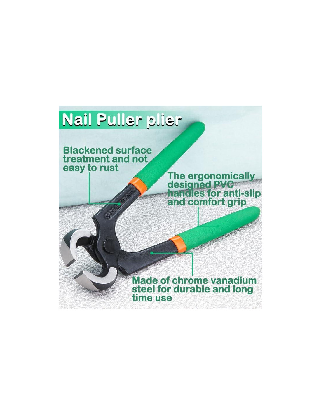 - Aplicación: Alicate extractor de clavos con borde de corte tratado térmicamente puede ayudarte a quitar rápidamente muebles, tapicería, madera, pisos, clavos de neumáticos, clavos de zapatos. Tamaño pequeño y peso ligero, portátil para fácil transporte, es una herramienta esencial para carpinteros, construcción, manitas, instalación de nuevos pisos, etc.