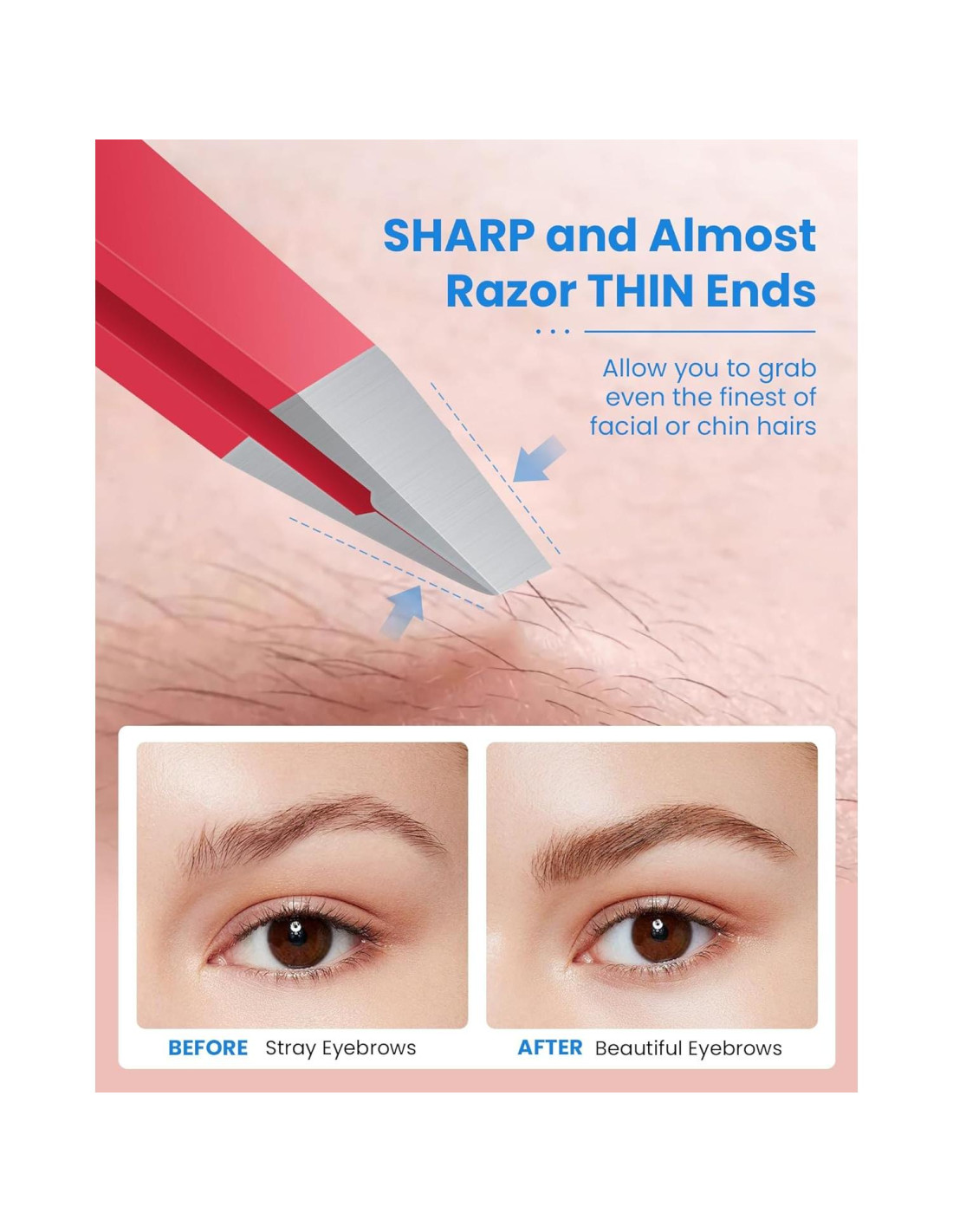 - Puntas inclinadas afiladas para cada pelo. La punta inclinada de 25 es el ángulo perfecto para eliminar el vello no deseado. Estas puntas ultrafinas agarran los pelos más pequeños sin esfuerzo, desde vello de durazno hasta pelos de barbilla rebeldes. A diferencia de las pinzas endebles, nuestro diseño de grado profesional elimina los pelos de manera limpia sin rotura. Perfectas para las rutinas de cuidado del vello facial de las mujeres y los kits de cuidado personal de los hombres.