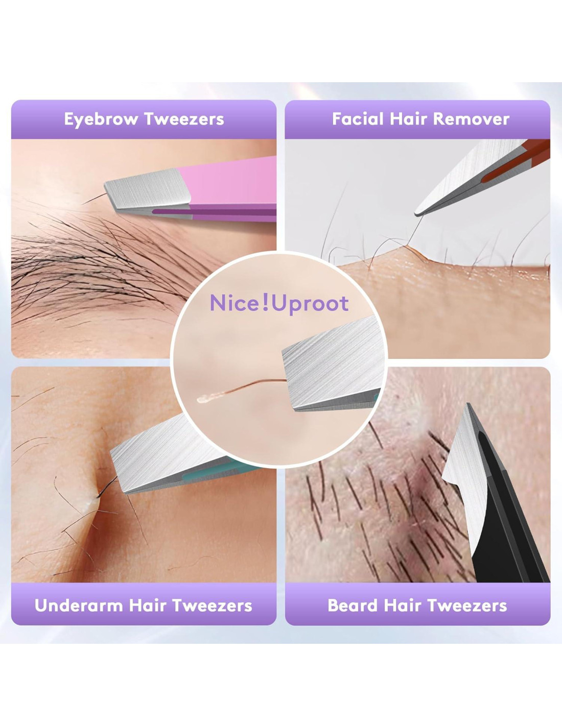 - Extractor de Vello Indoloro: Pinzas de alta precisión con cero espacio y precisión de cierre de boca de 0.01mm, ¡agarra y saca los vellos tan fácil como recoger pétalos de flores! ¡No más rechinar de dientes y tirar de vellos! Vello de axilas, barba, un clip que es limpio, ¡sin dolor y no irá a la cabeza!