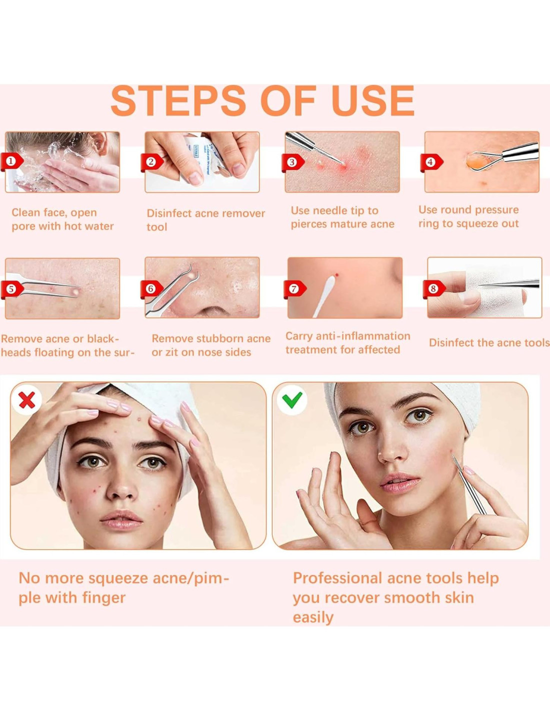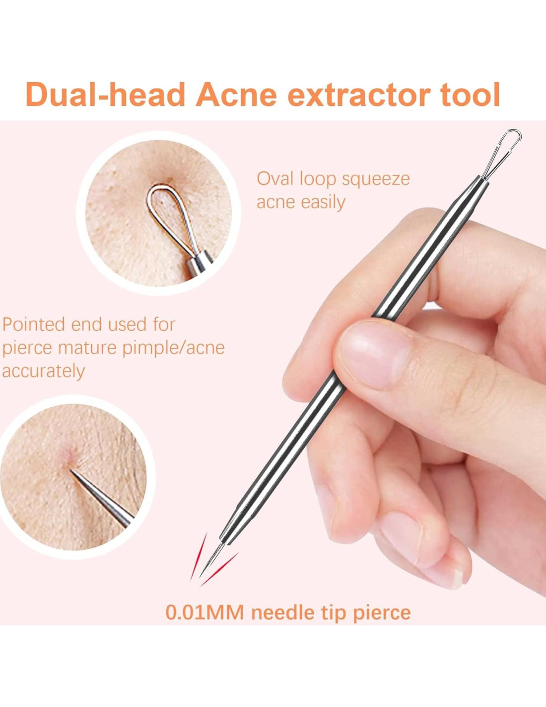 No importa el brote y no importa el lugar de difícil acceso donde ocurran, tenemos la herramienta adecuada para ayudar: removedor de puntos negros, pinzas para astillas, depilador de vello, tratamiento de milia, reventador de granos y extractor de comedones de acné. ¡Genial para hombres y mujeres, jóvenes y mayores!
